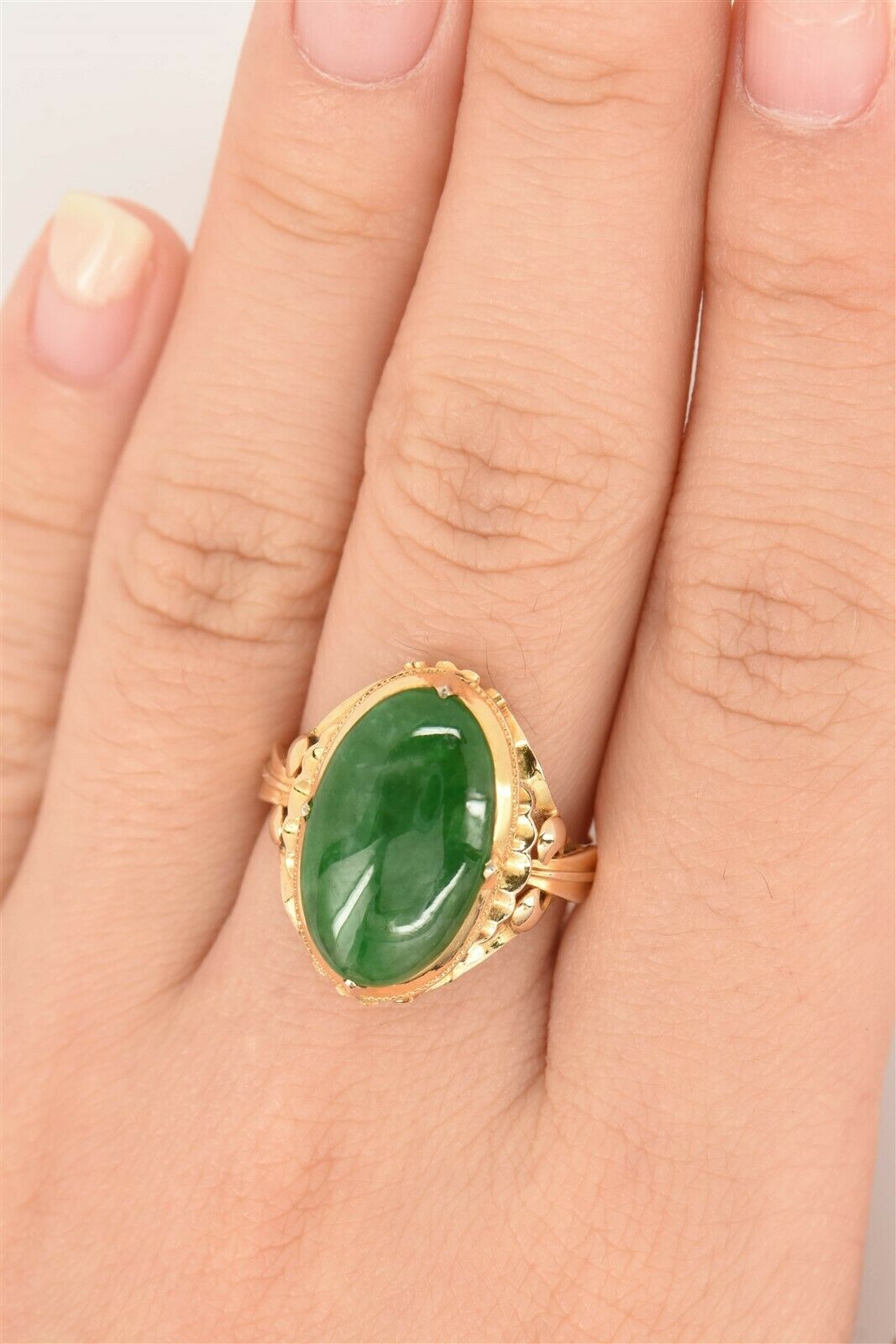 14K Gold Jade Ring 4.84g