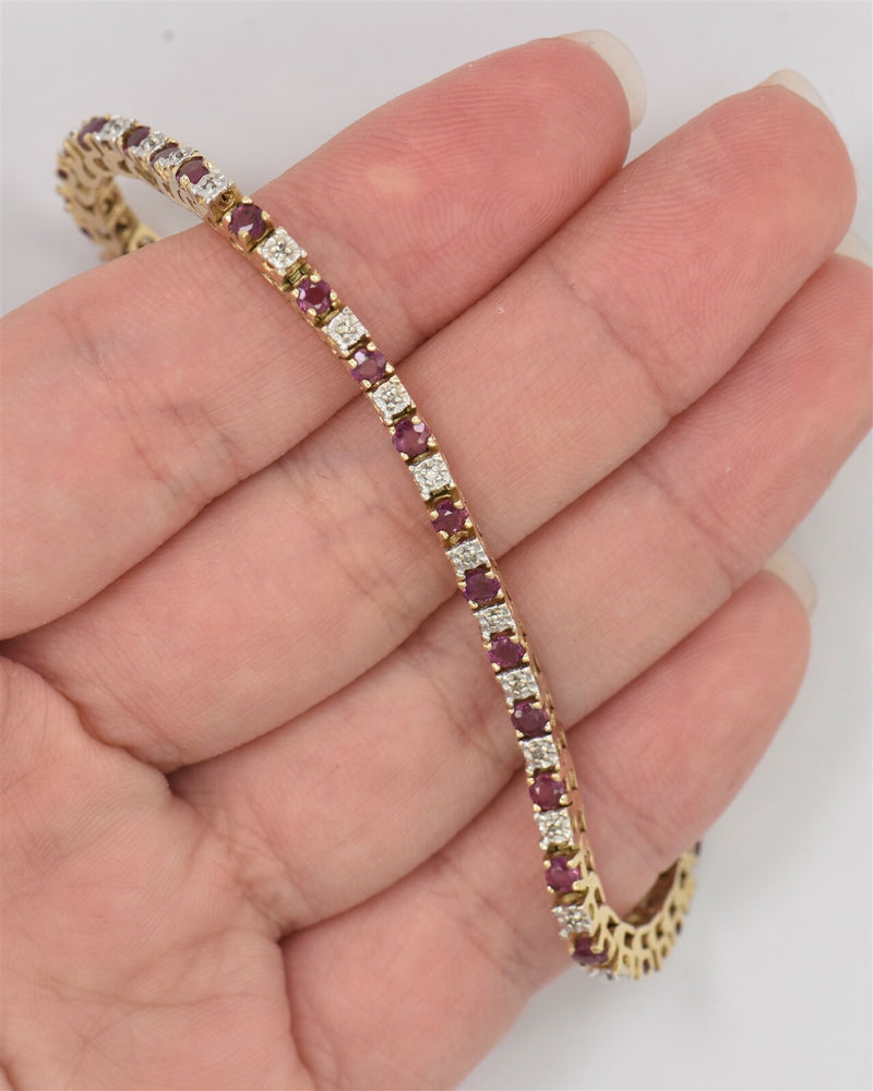 14K Pink Sapphire Diamond Bracelet 9.46g