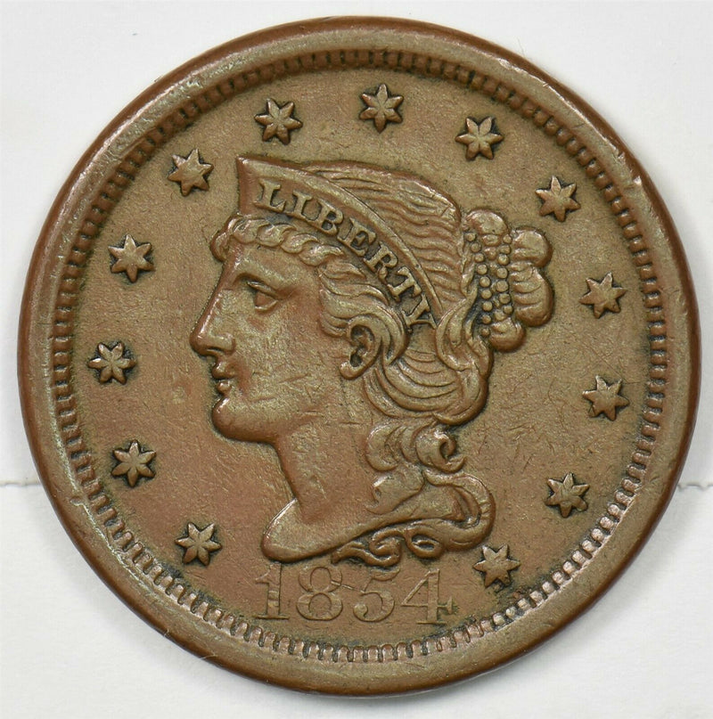 1854 Braided Hair Large Cent AU/XF U0377