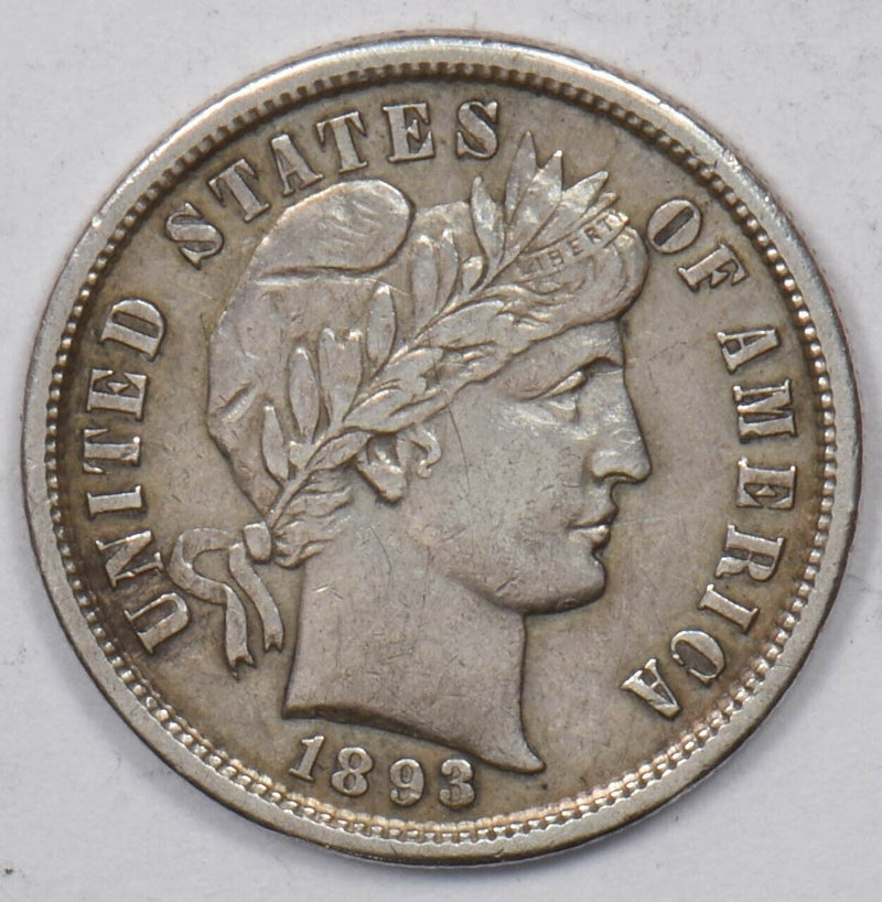 1893-S Barber Dime 90% silver "Triple Die S" Very Rare XF/AU U0742