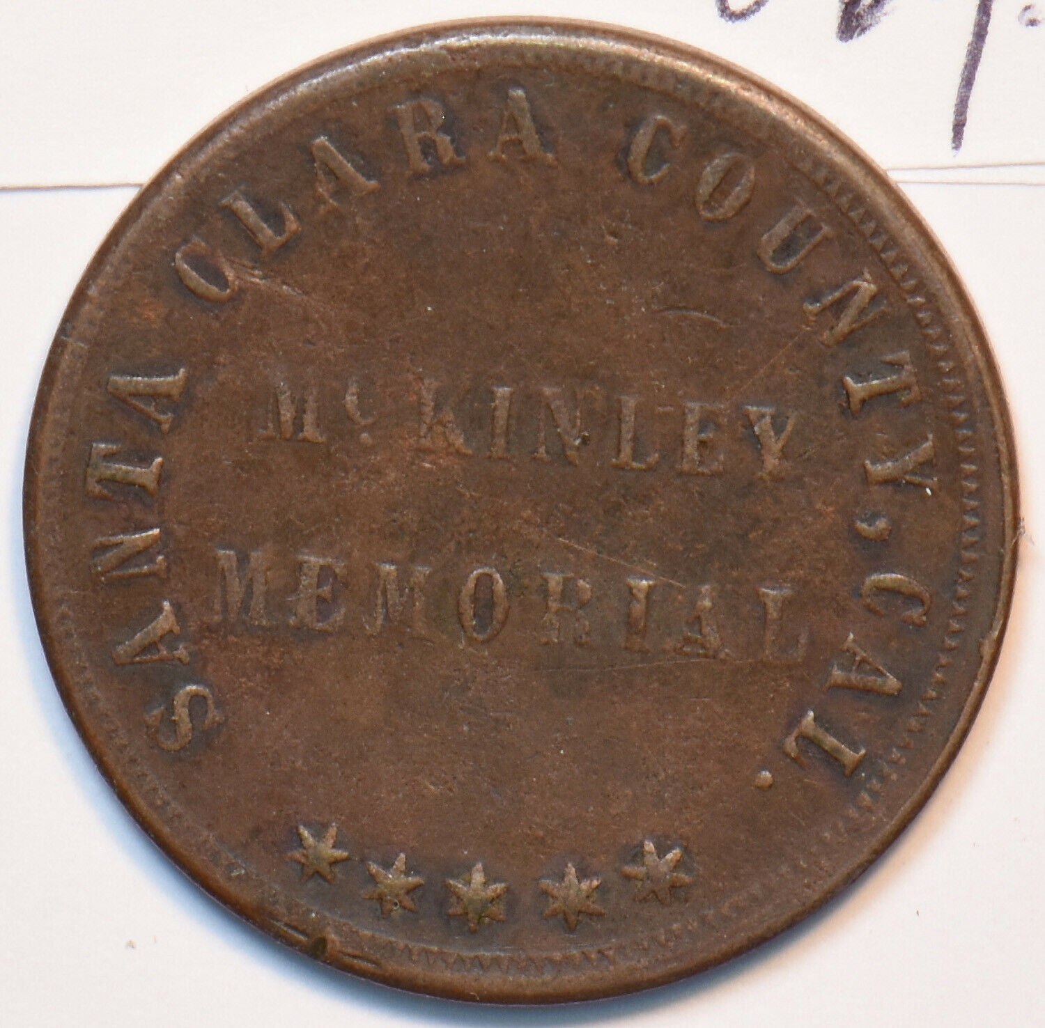 1901 Santa Clara, CA Token McKinley memorial 294730 combine shipping