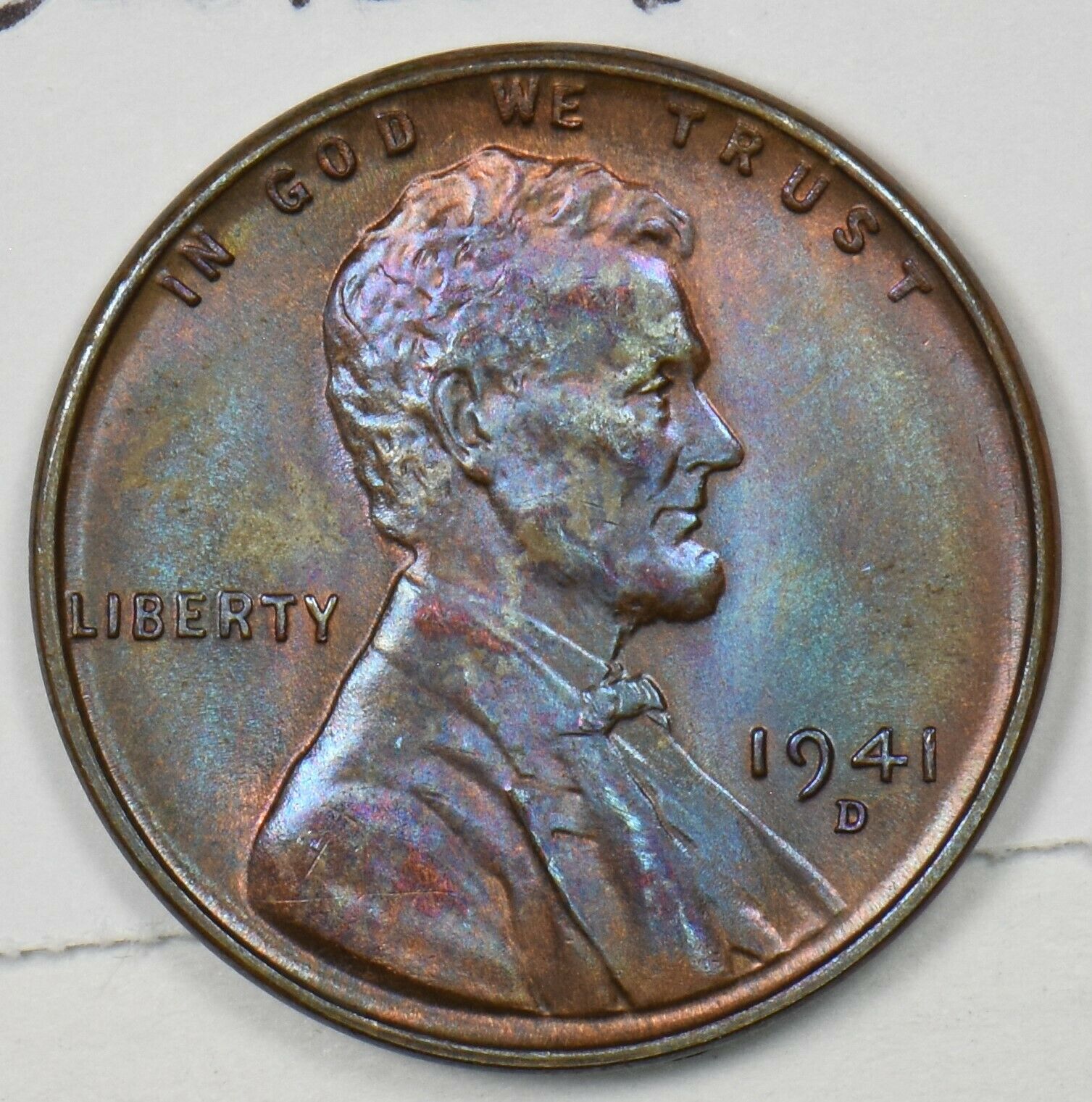 1941-D Lincoln Wheat Cent Magenta Blue Colors GEM BU-BN U0440