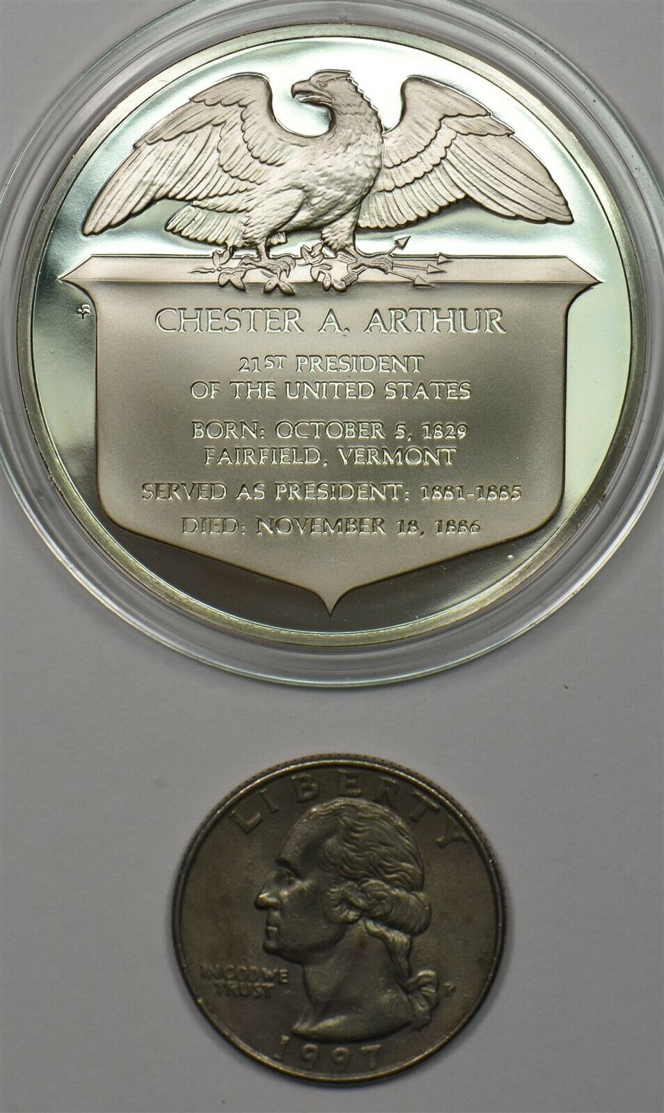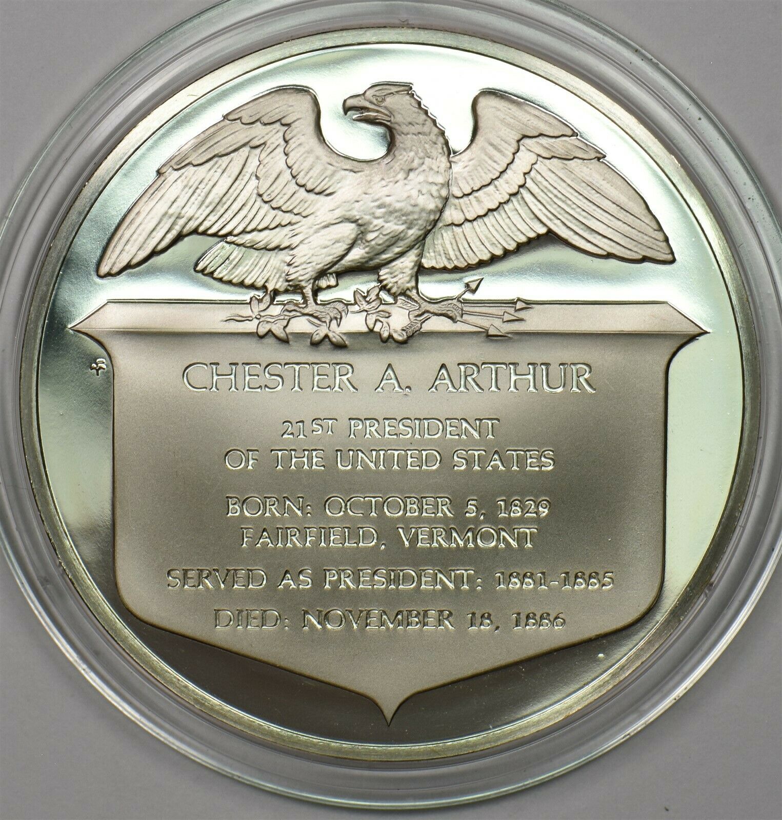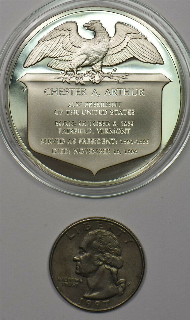 1980 's Medal Proof Chester A Arthur in capsule 1.2oz pure silver Franklin Mint BU0653 combine shipping