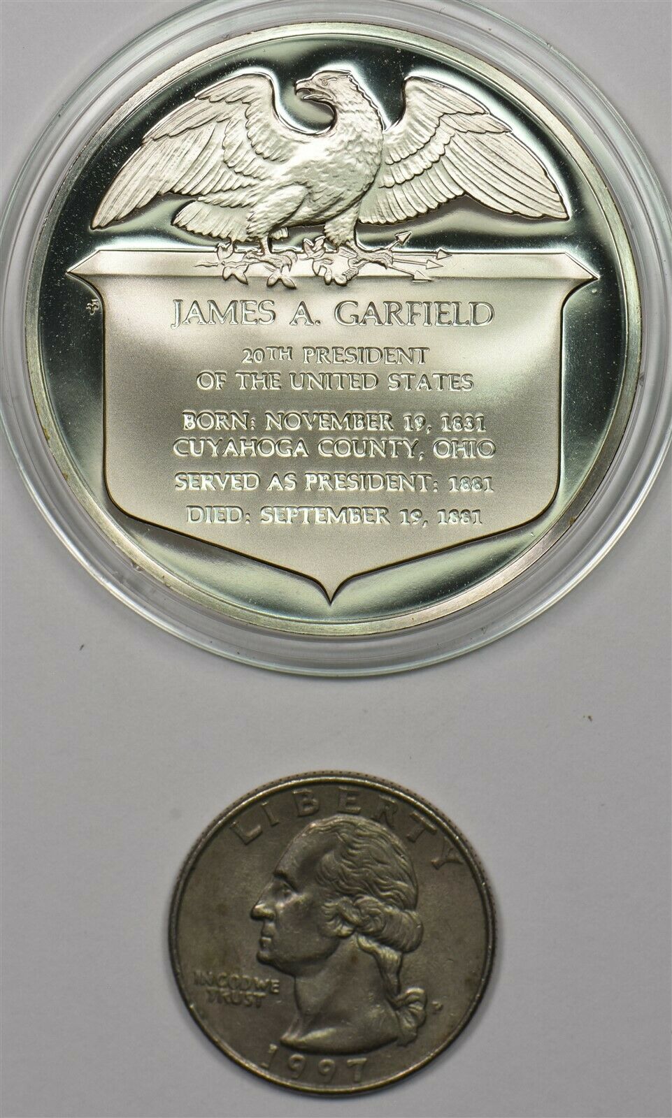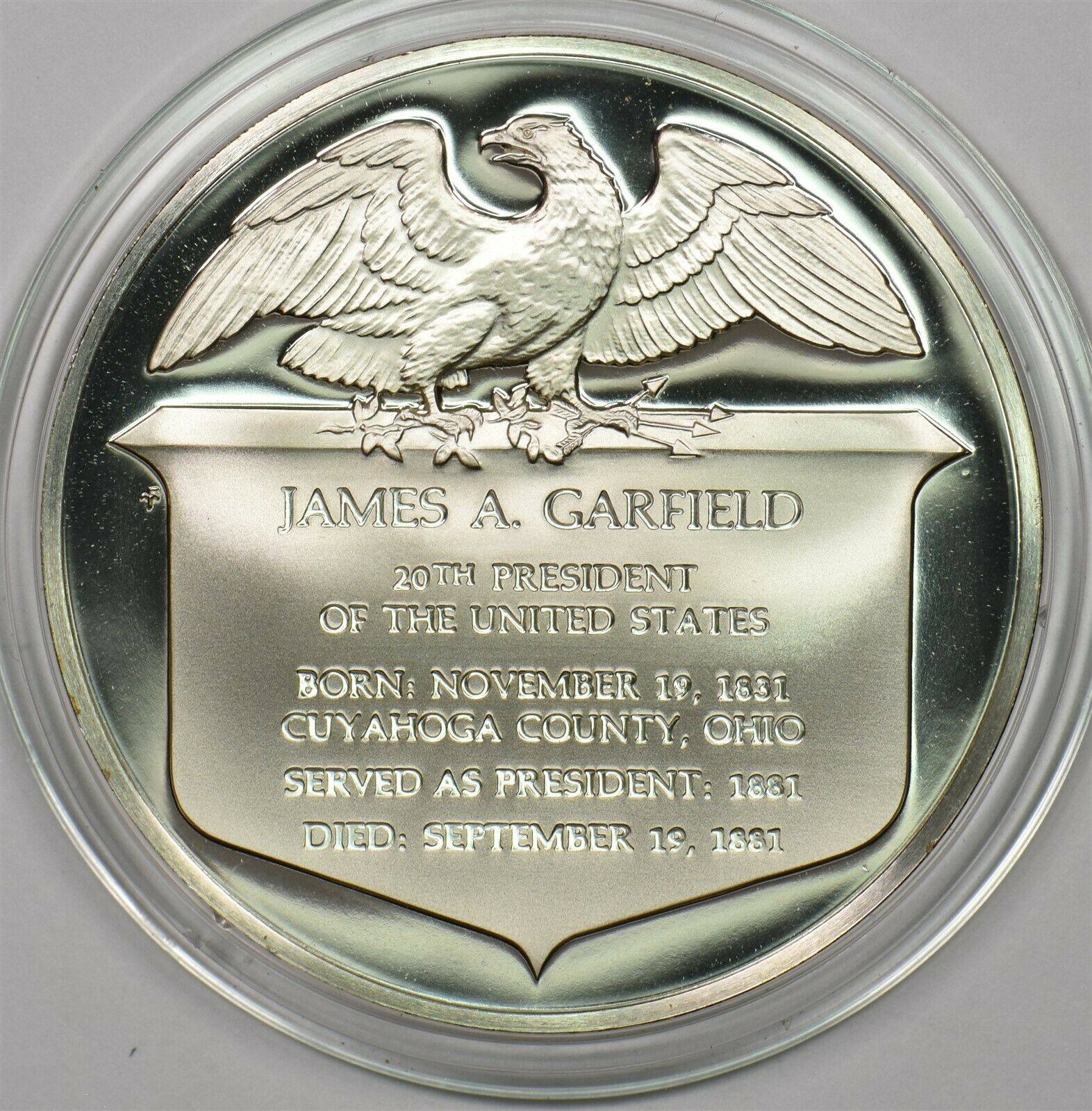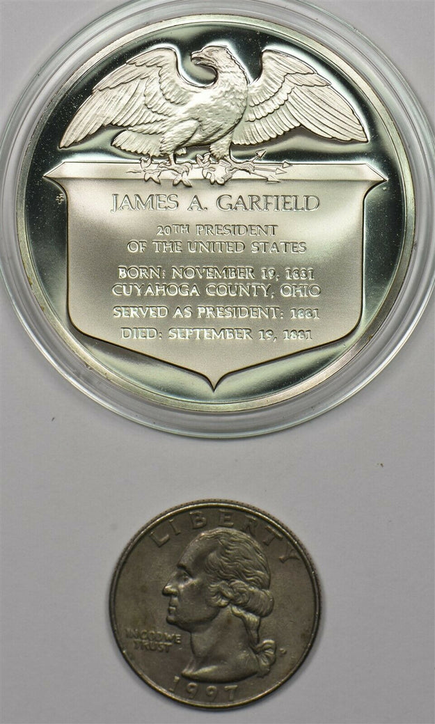 1980 's Medal Proof James Garfield in capsule 1.2oz pure silver Franklin Mint BU0645 combine shipping