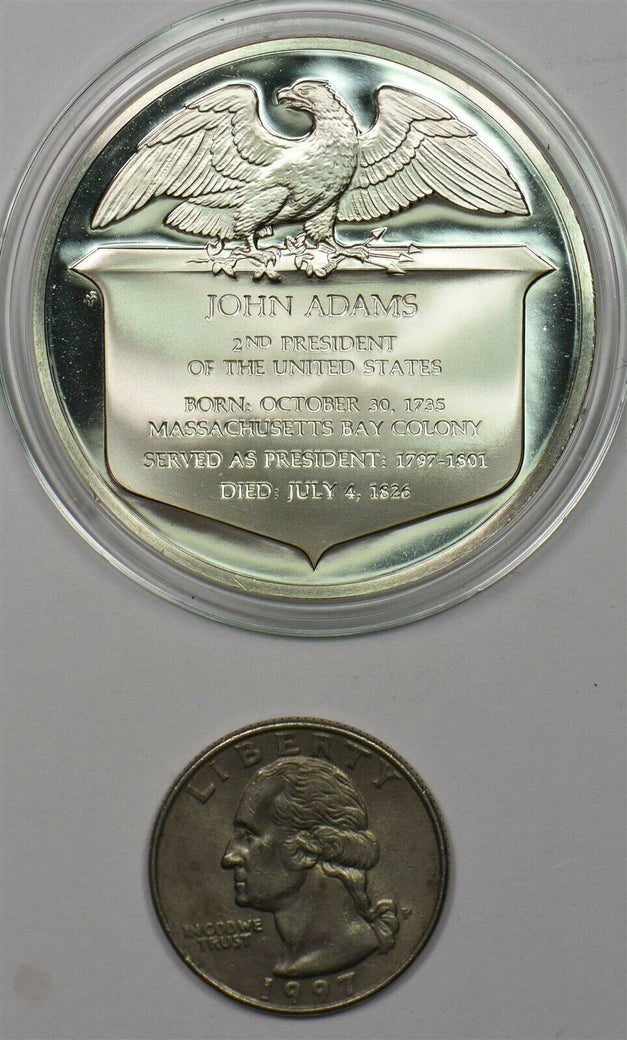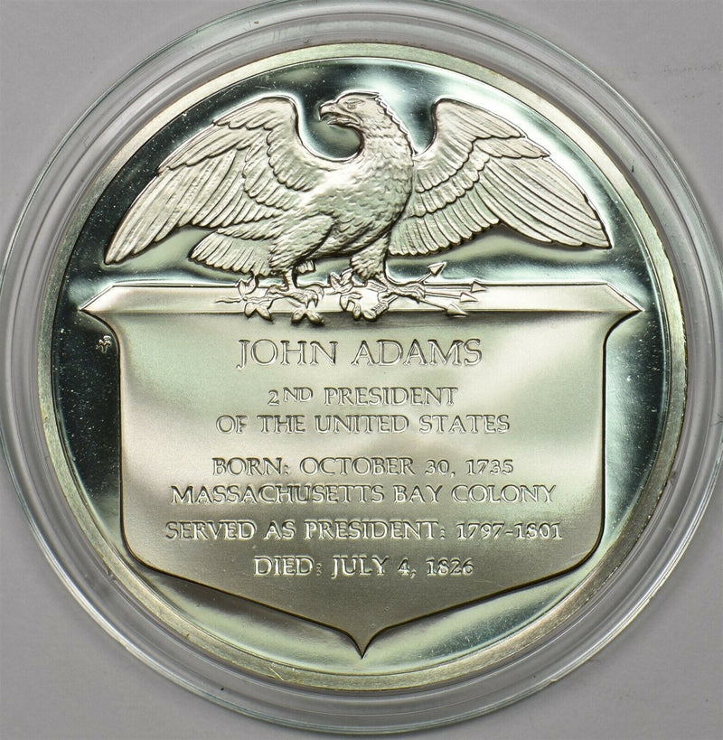 1980 's Medal Proof John Adams in capsule 1.2oz pure silver Franklin Mint BU0666 combine shipping