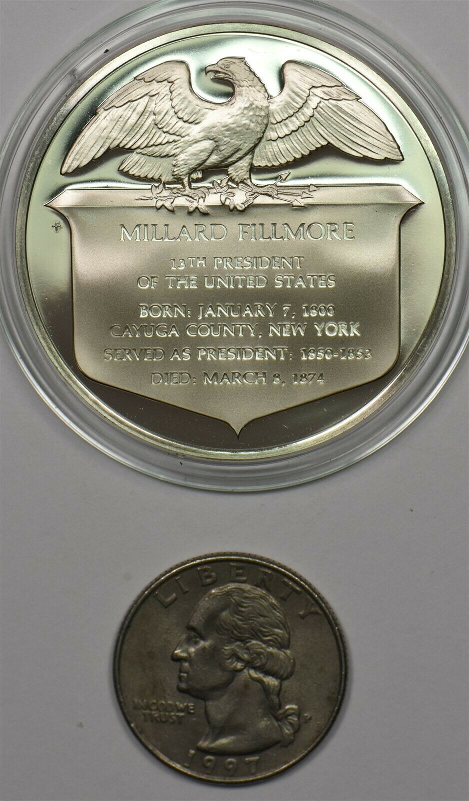 1980 's Medal Proof Milard Filmore in capsule 1.2oz pure silver Franklin Mint BU0652 combine shipping