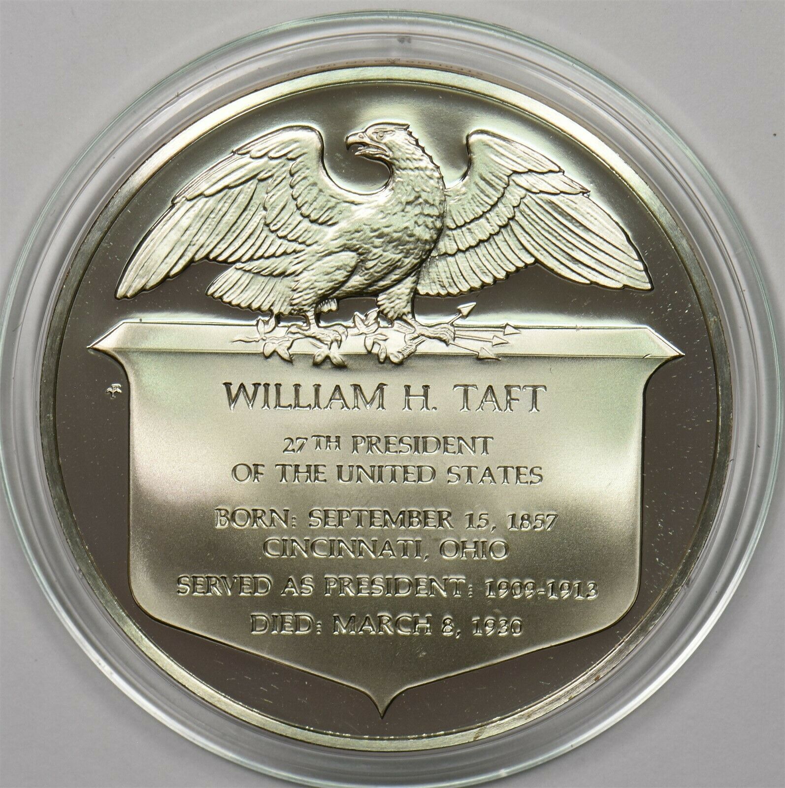 1980 's Medal Proof William H Taft in capsule 1.2oz pure silver Franklin Mint BU0656 combine shipping