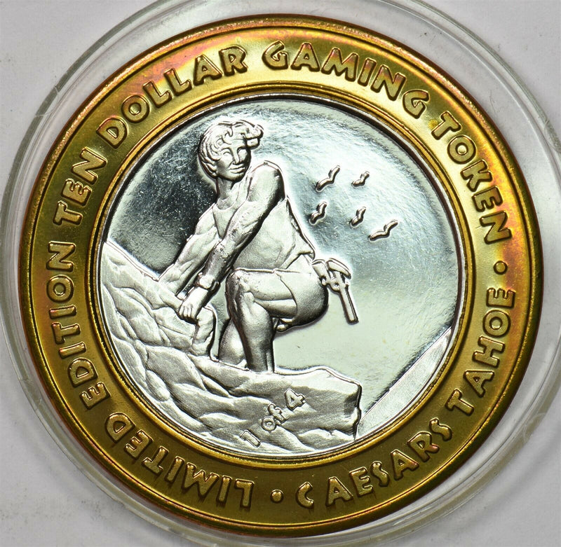 1990 's Casino Chip Token silver Caesar's Tahoe $10 silver gaming token limited edition "Rock Climber" BU0568 combine shipping