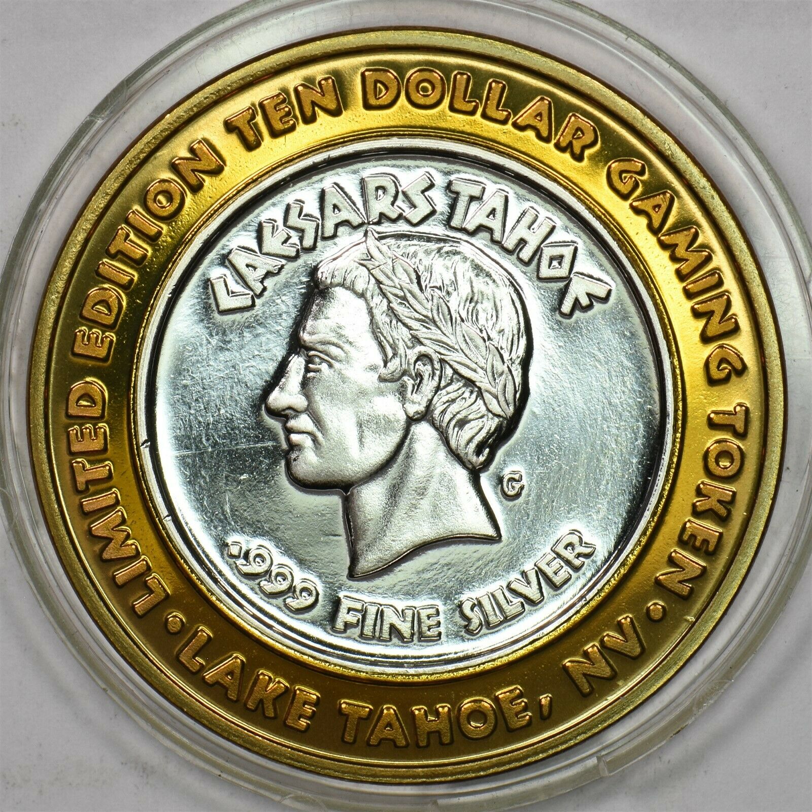 1990 's Casino Chip Token silver Caesar's Tahoe $10 silver gaming token limited