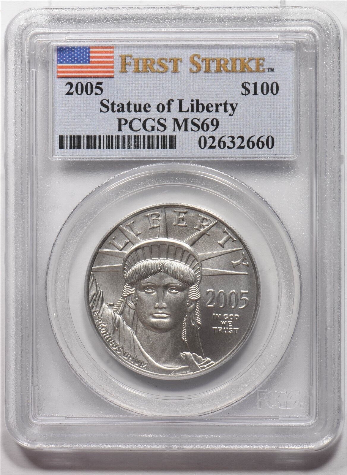 2005 Platinum Eagle $100 liberty first strike APtW oz PCGS MS69 PC1609