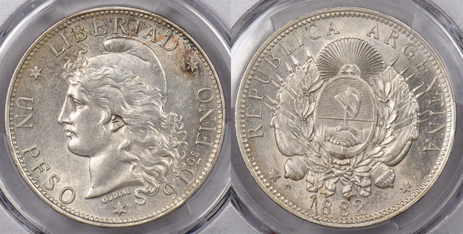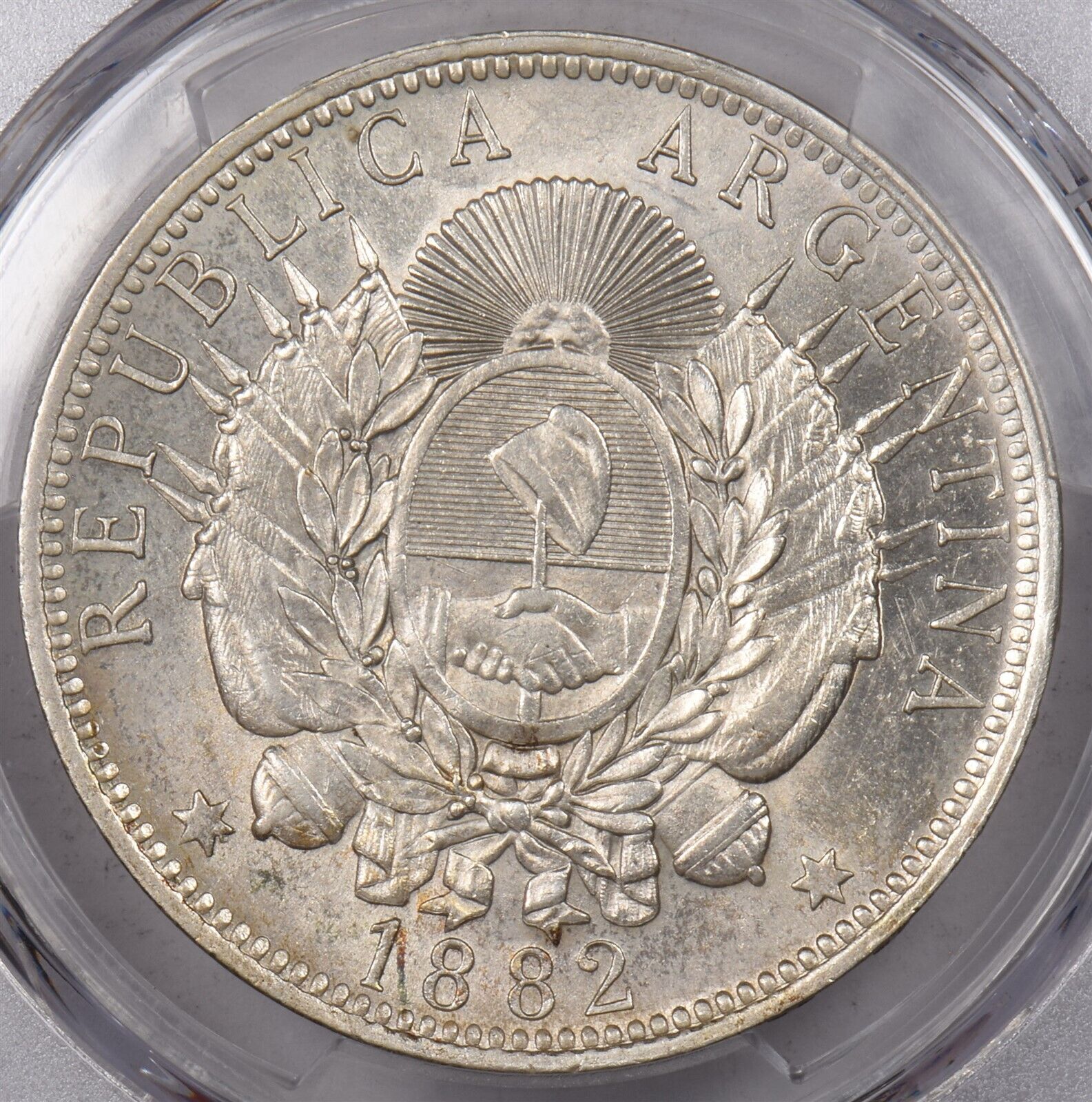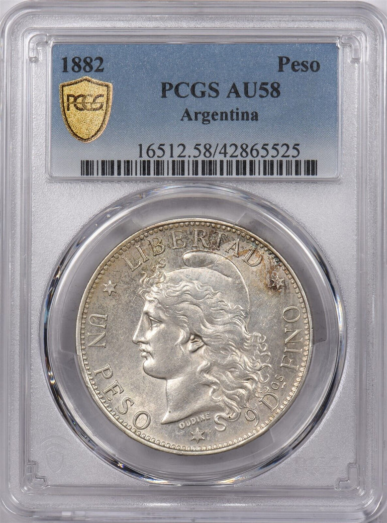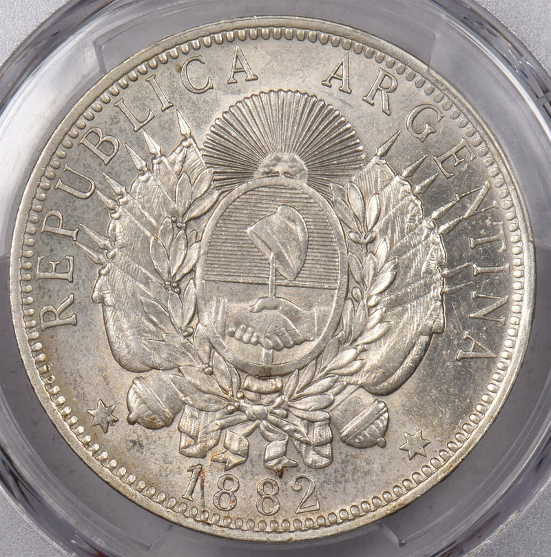 Argentina 1882 Peso PCGS AU 58 PC1434 combine shipping