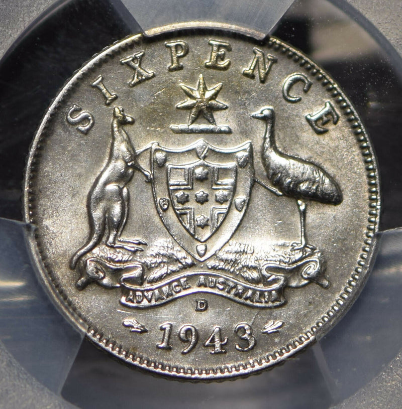 Australia 1943 6 Pence Kangaroo animal Emu PCGS MS61 PC0790* combine shipping