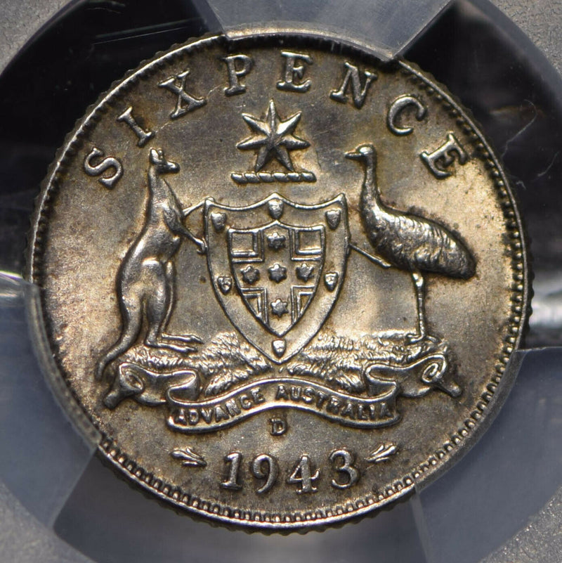 Australia 1943 D 6 Pence Kangaroo animal Emu PCGS AU PC0787 combine shipping