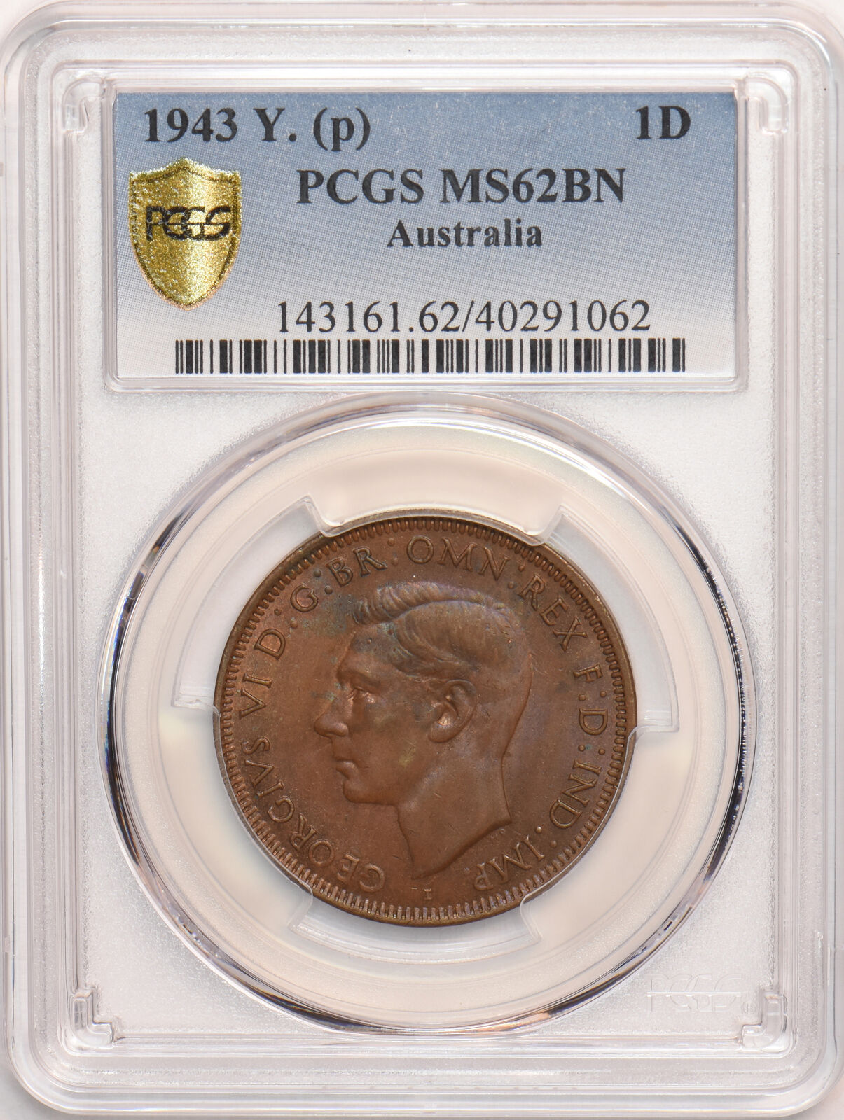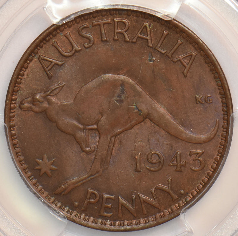 Australia 1943 Y. (p) Penny Kangaroo animal PCGS MS62BN PC1078 combine shipping