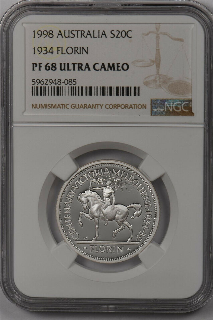 Australia 1998 20 Cents silver NGC Proof 68UC 1934 Florin NG1454 combine shippin