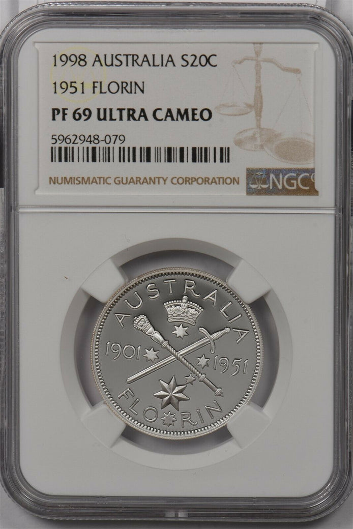 Australia 1998 20 Cents silver NGC Proof 69UC 1951 Florin NG1441 combine shippin