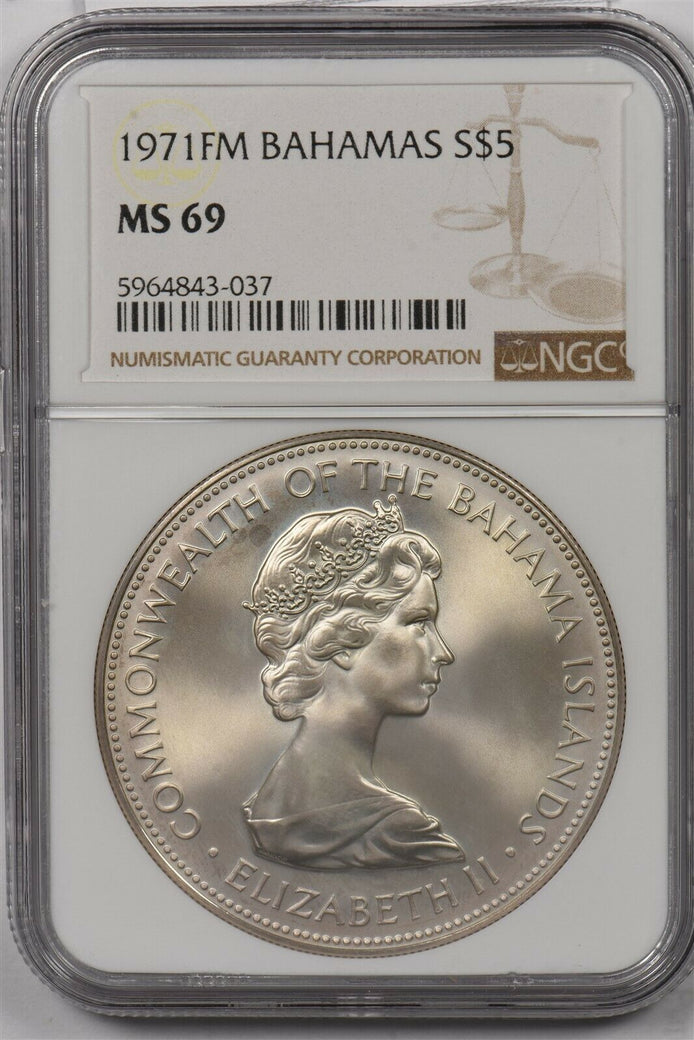 Bahamas 1971 FM 5 Dollars silver NGC MS69 NG1327 combine shipping