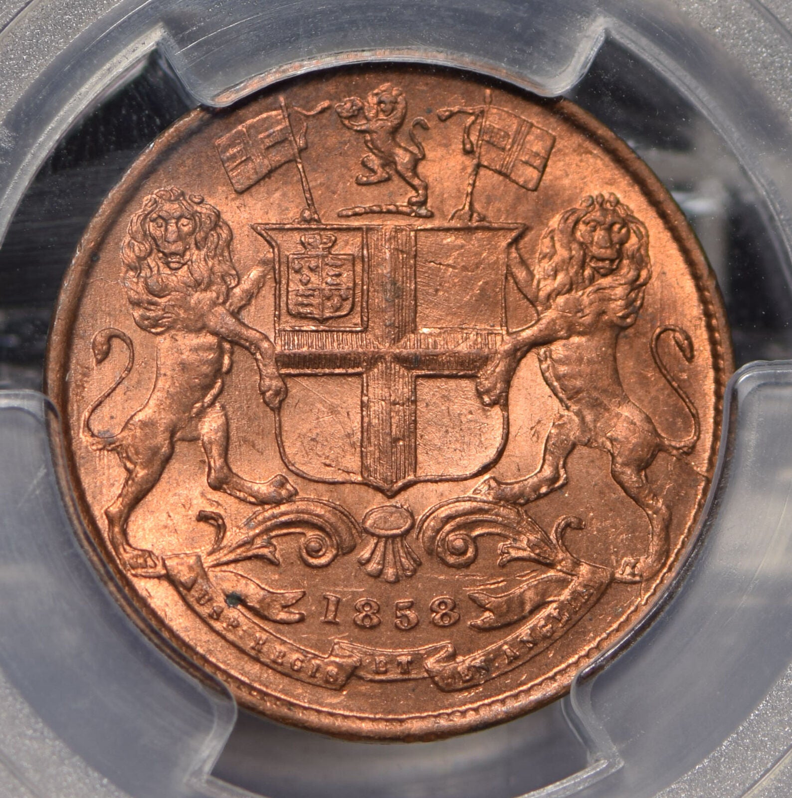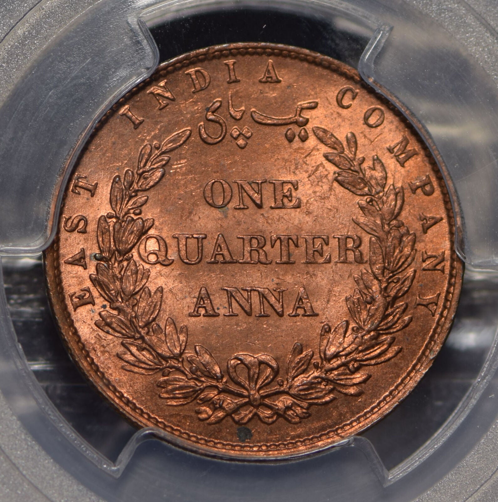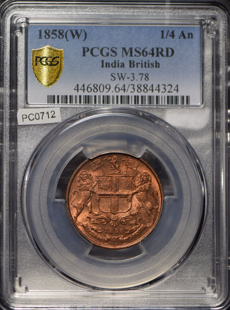 British India 1858 1/4 Anna Lion animal PCGS MS64RD rare in RED! SW-3.78 PC0712 combine shipping