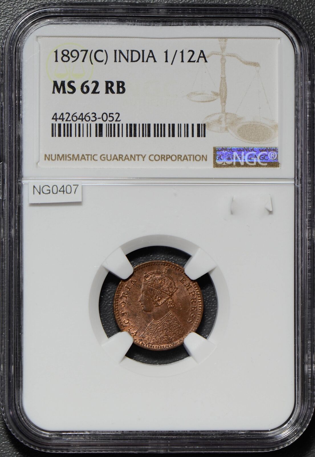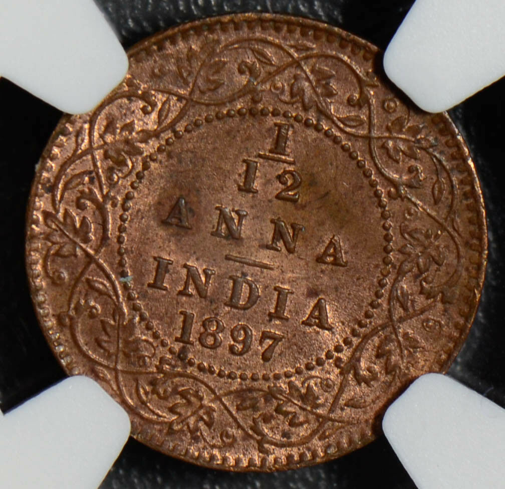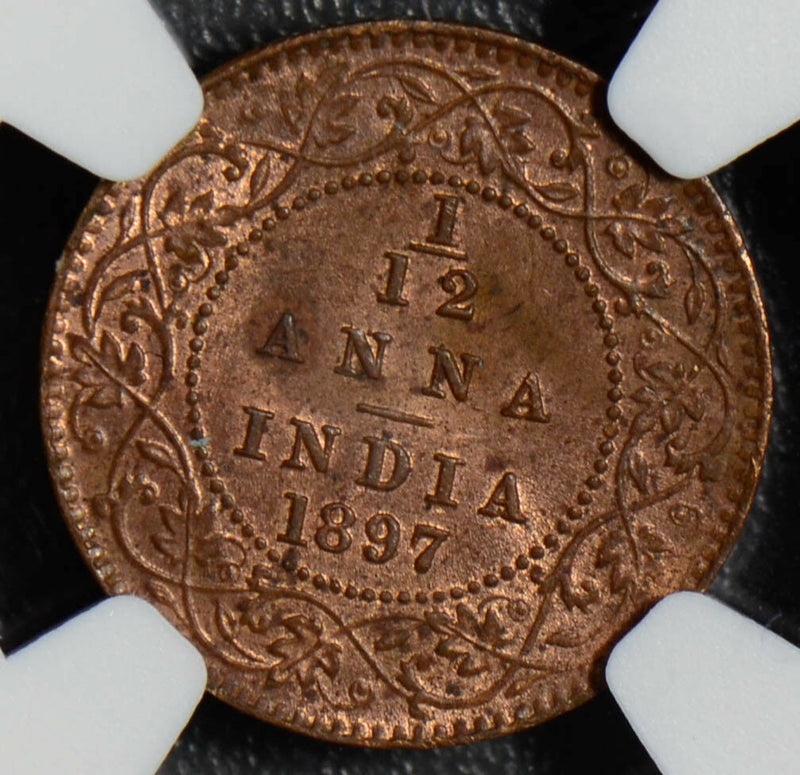British India 1897 C 1/12 Anna NGC MS62RB calcutta mint NG0407 combine shipping