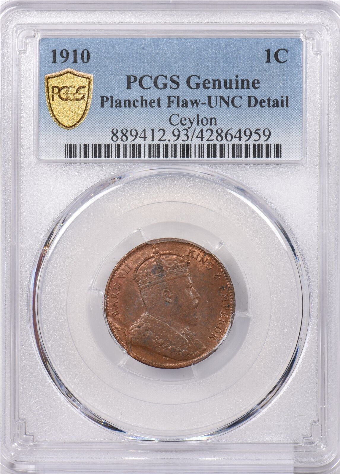 Ceylon 1910 Cent PCGS UNC PI0153 combine shipping