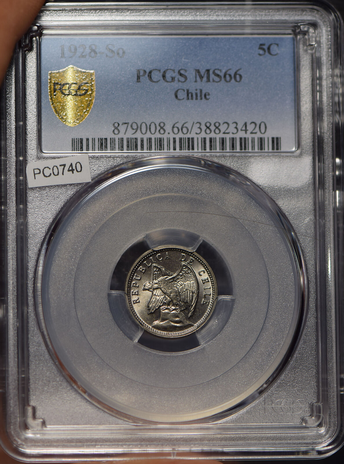 Chile 1928 5 Centavos Andean Condor animal PCGS MS66 rare this grade PC0740 comb
