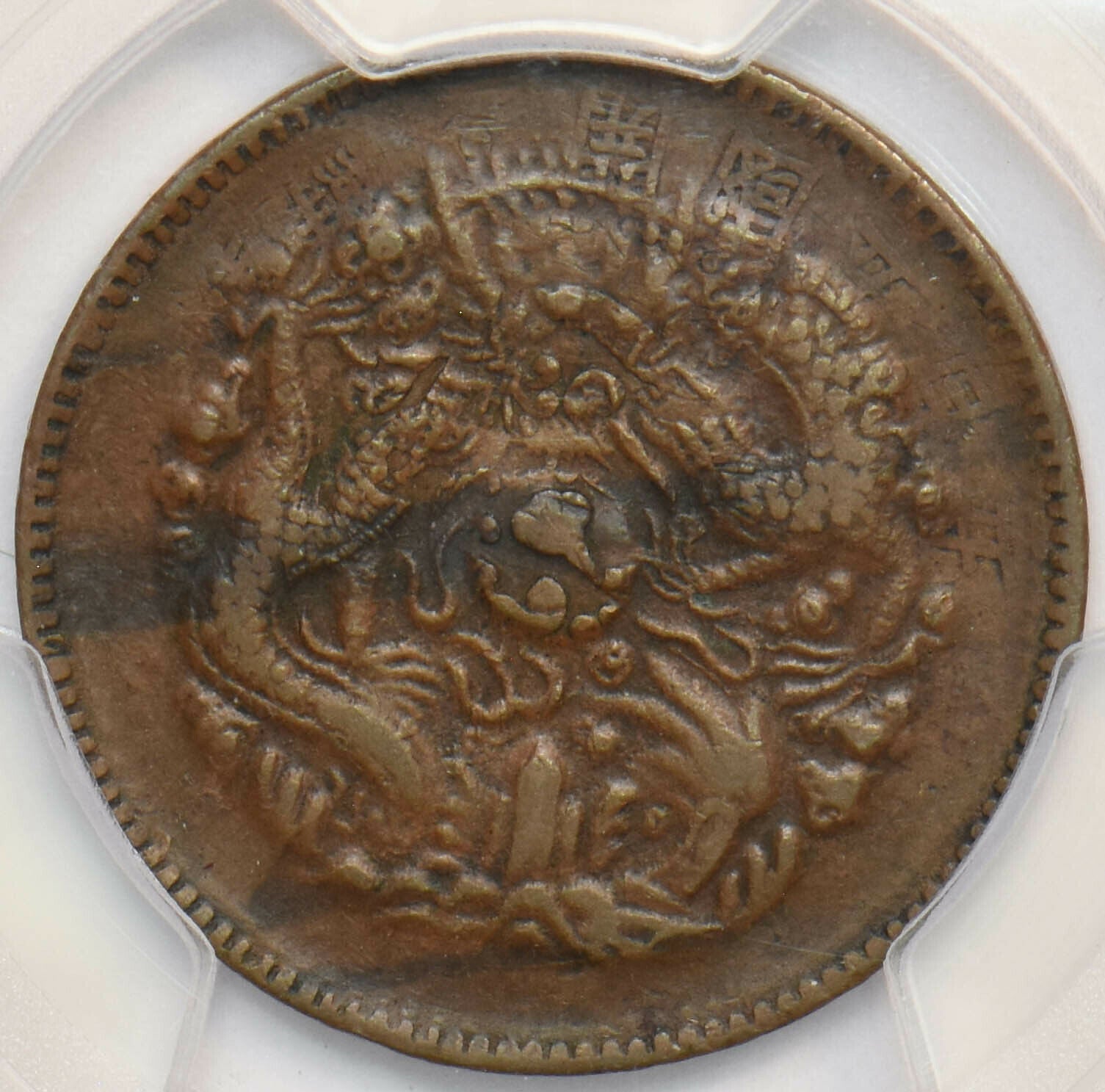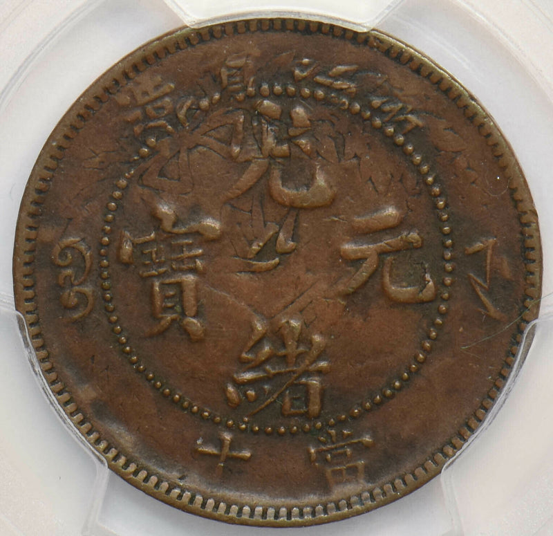 China 1903 ~06 10 Cash PCGS VF35 Chekiang. Struck over Korean 5 Fun super rare P