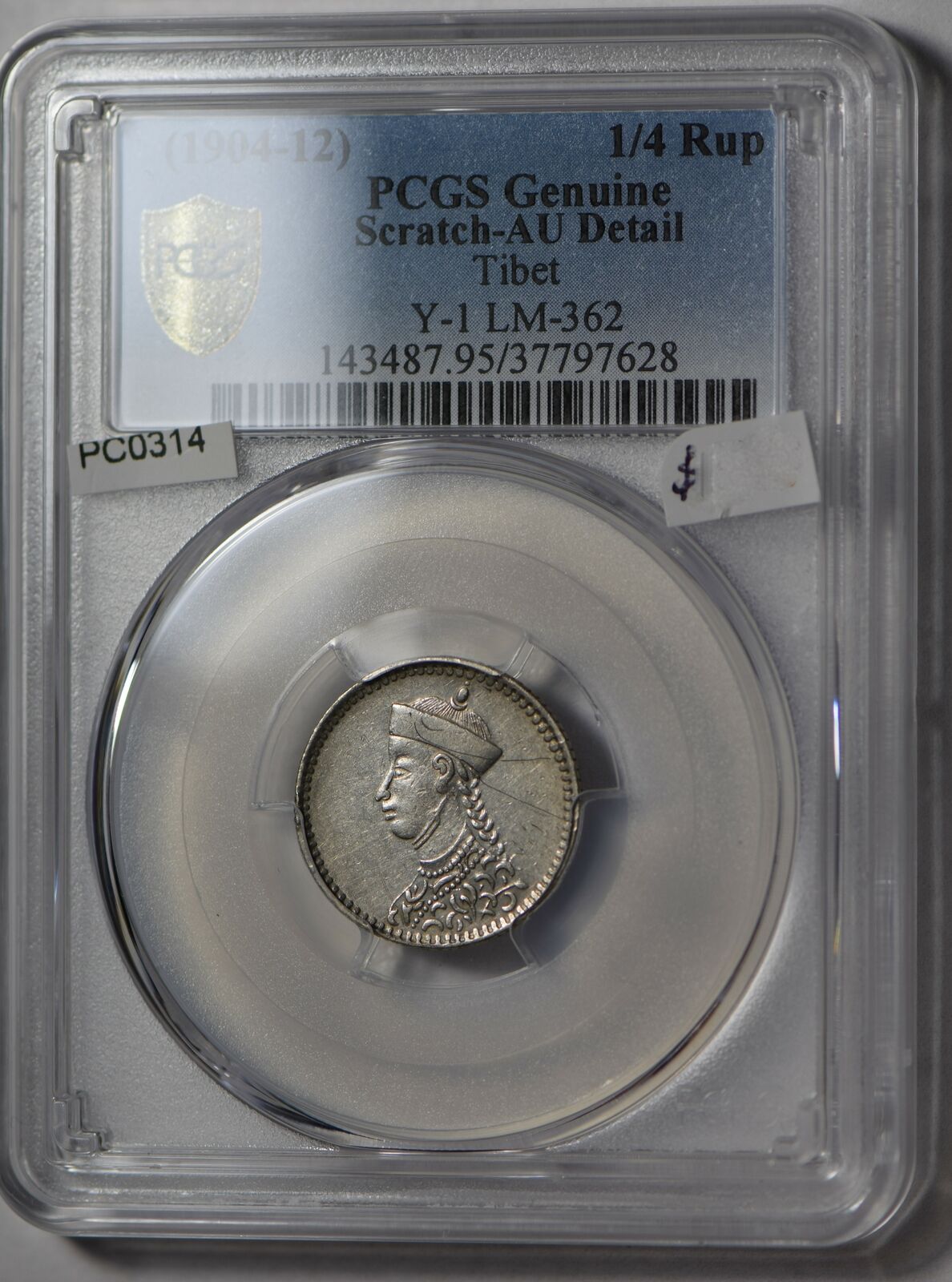 China 1904 ~12 Tibet 1/4 Rupee silver PCGS AU rare PC0314 combine shipping