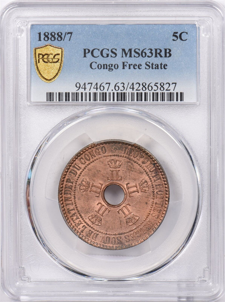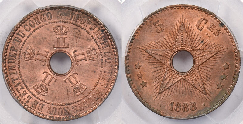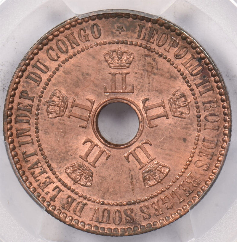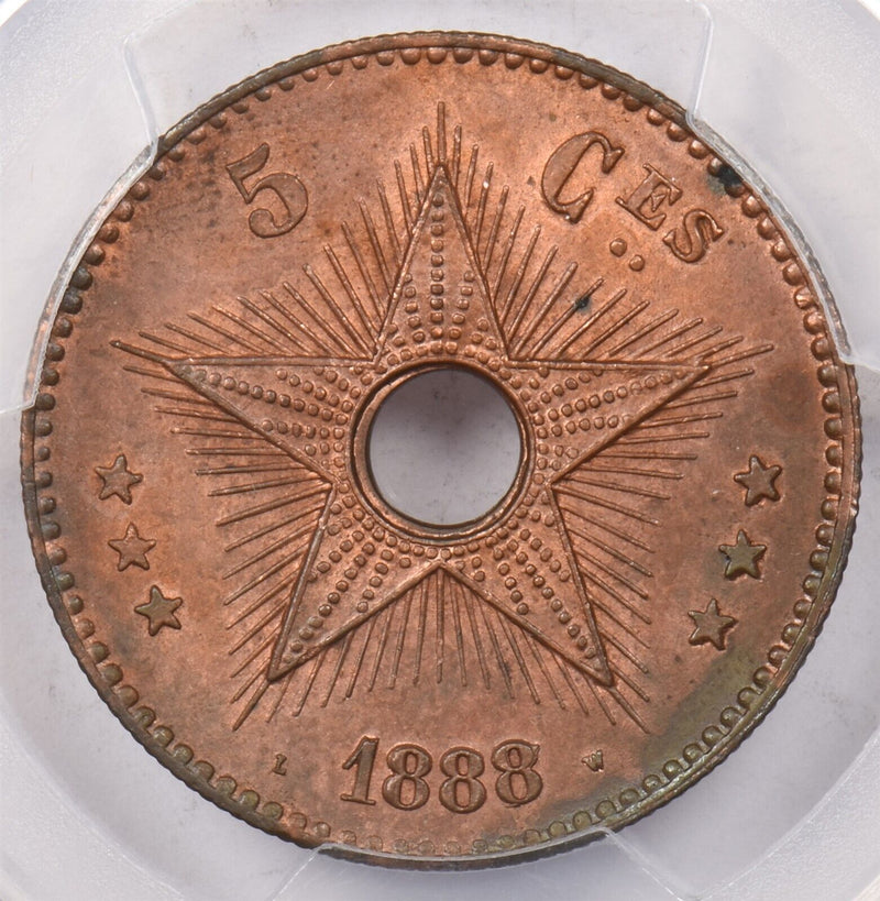 Congo 1888 /7 5 Centimes PCGS MS 63 RED BROWN PI0165 combine shipping