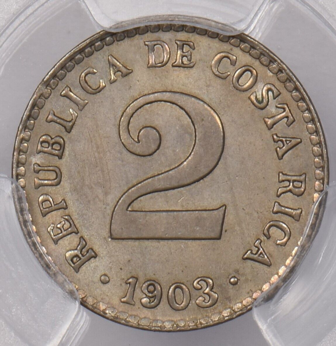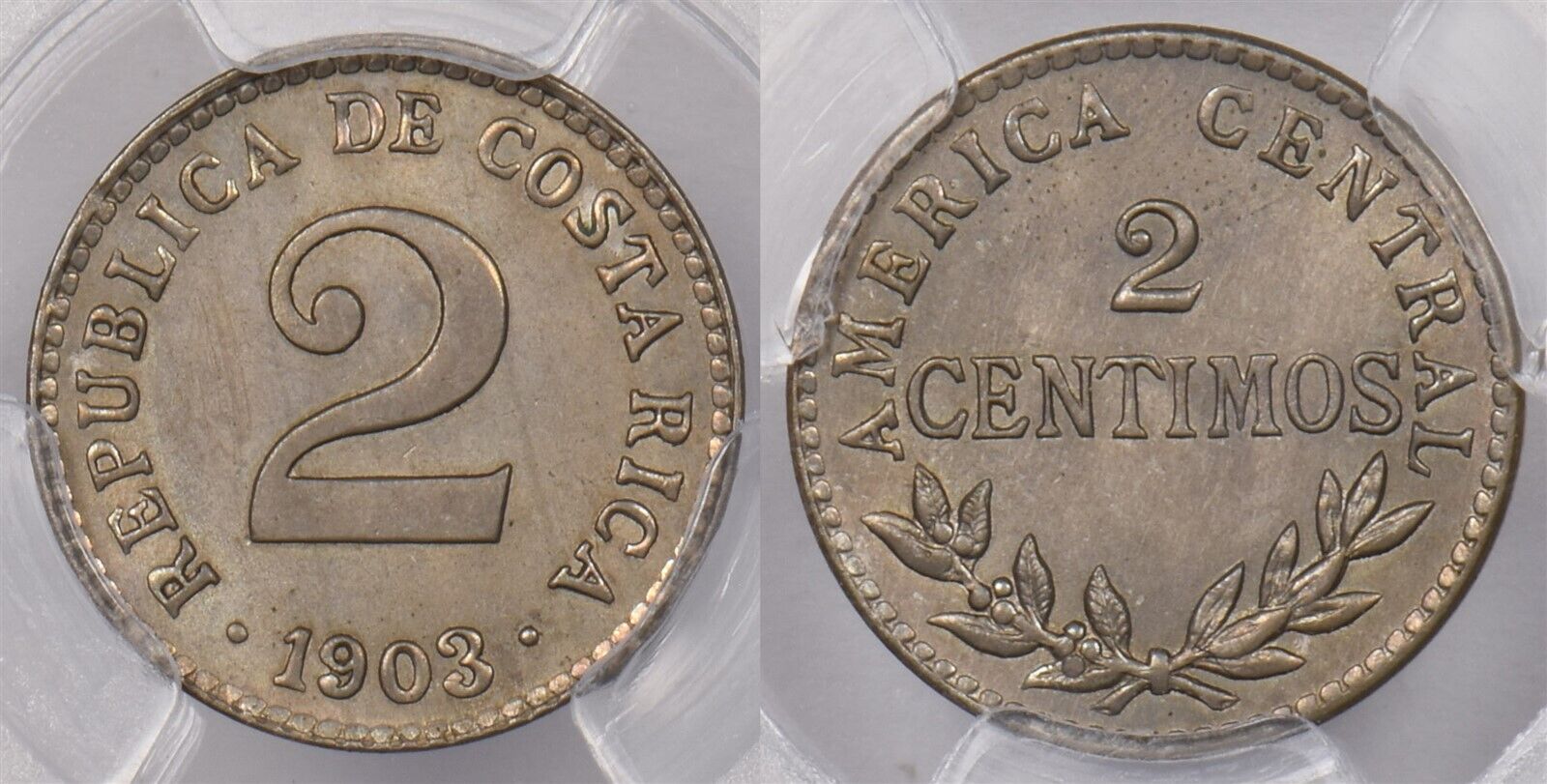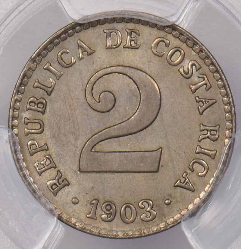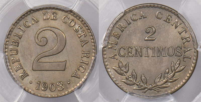 Costa Rica 1903 2 Centimos PCGS MS 65 finest known, None Finer PC1322 combine sh