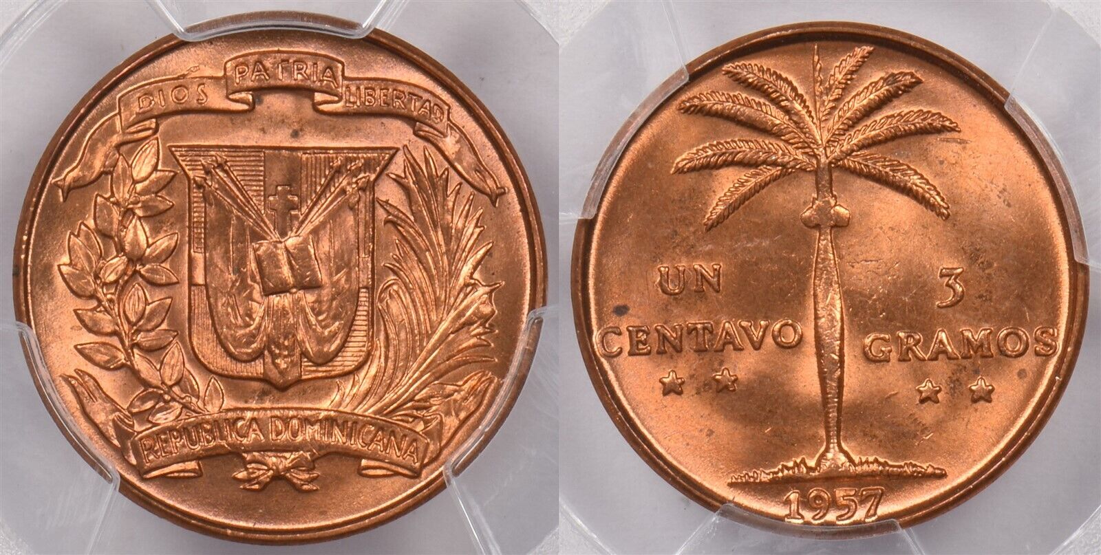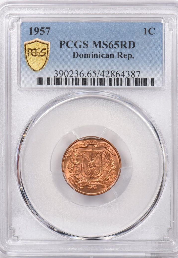Dominican Republic 1957 Centavo PCGS MS 65 RED PCGS Pop. 13, Only 2 Better, 4387 PC1313 combine shipping