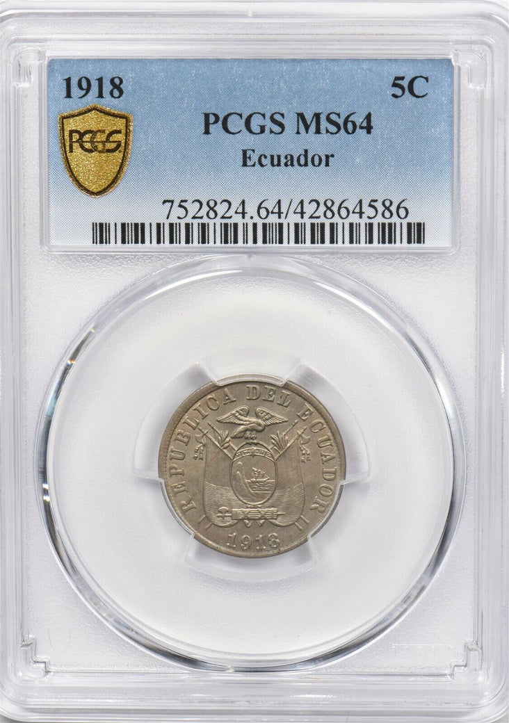 Ecuador 1918 5 Centavos Eagle animal PCGS MS 64 finest known rare condition PC1