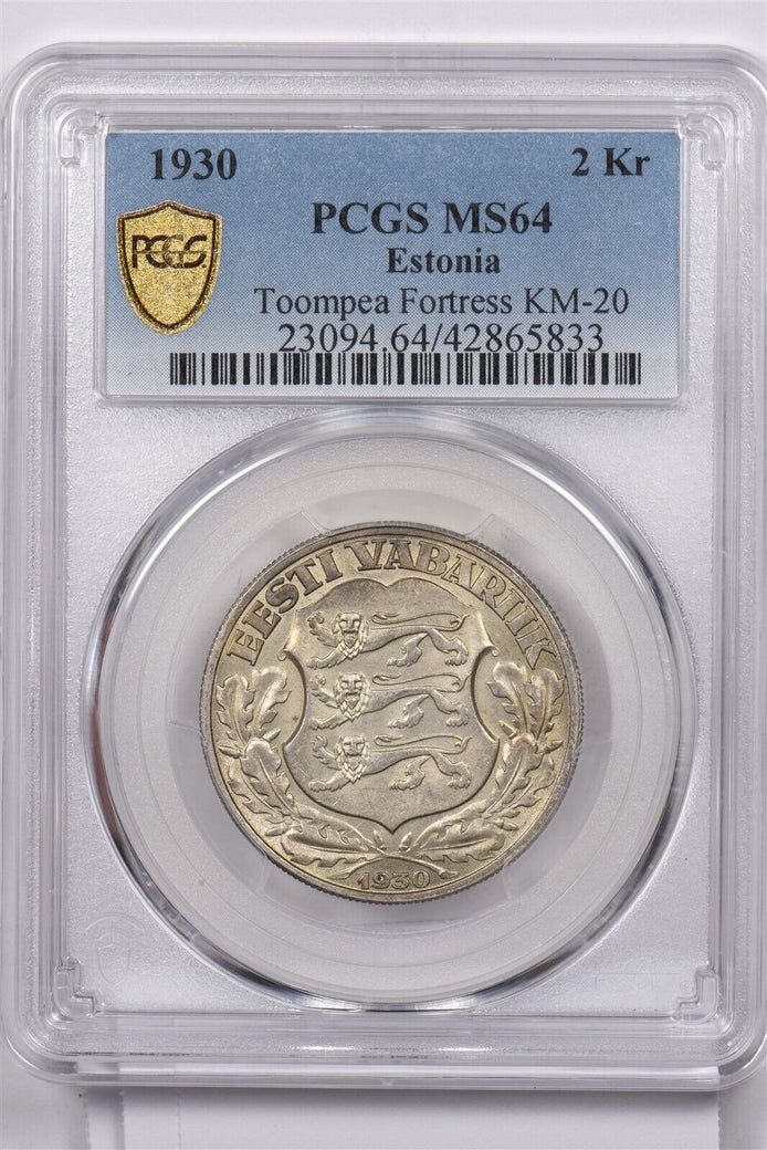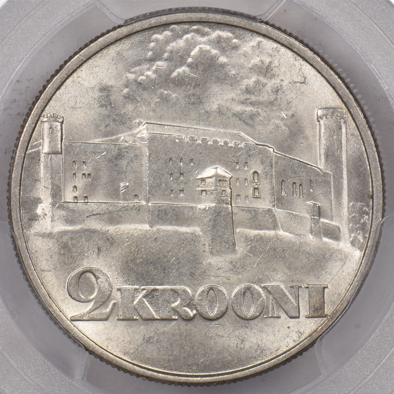 Estonia 1930 2 Krooni PCGS MS 64 Toompea Fortress KM-20 PC1459 combine shipping