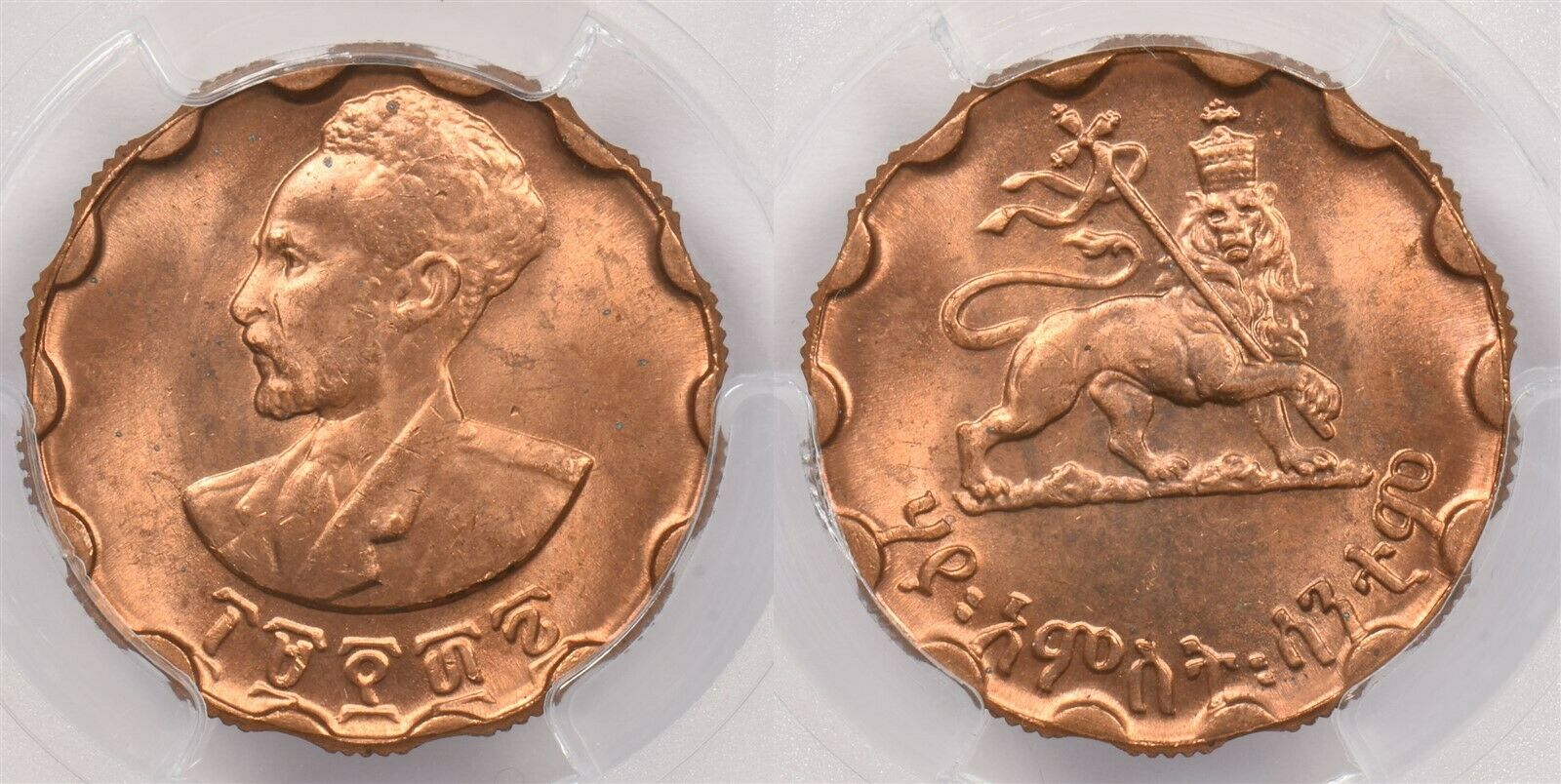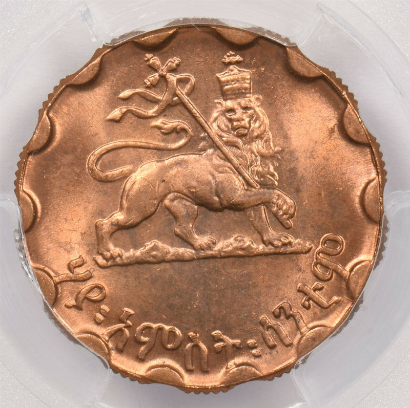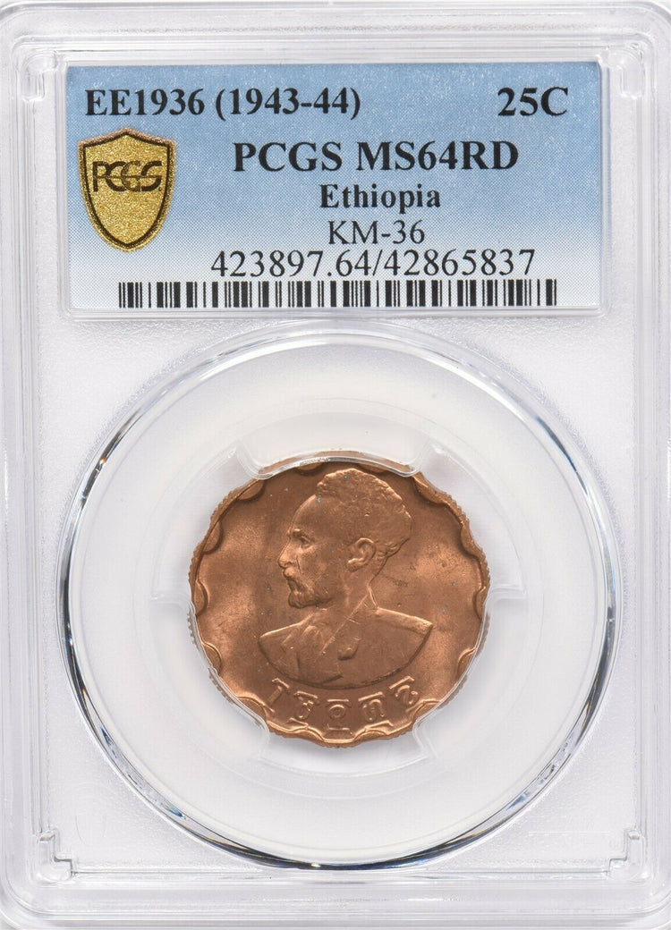 Ethiopia 1943~44 EE 1936 25 Cents Lion animal PCGS MS 64 RED Rare in Red KM-36 PC1235 combine shipping