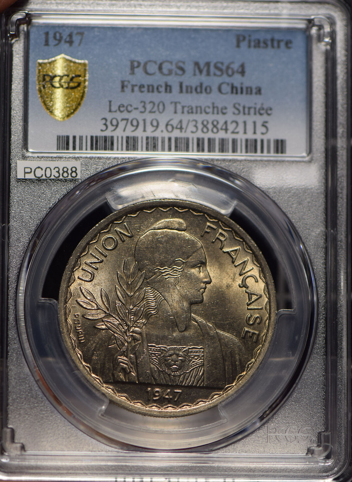 French Indo China 1947 Piastre PCGS MS64 Tranche Striee PC0388 combine shippin