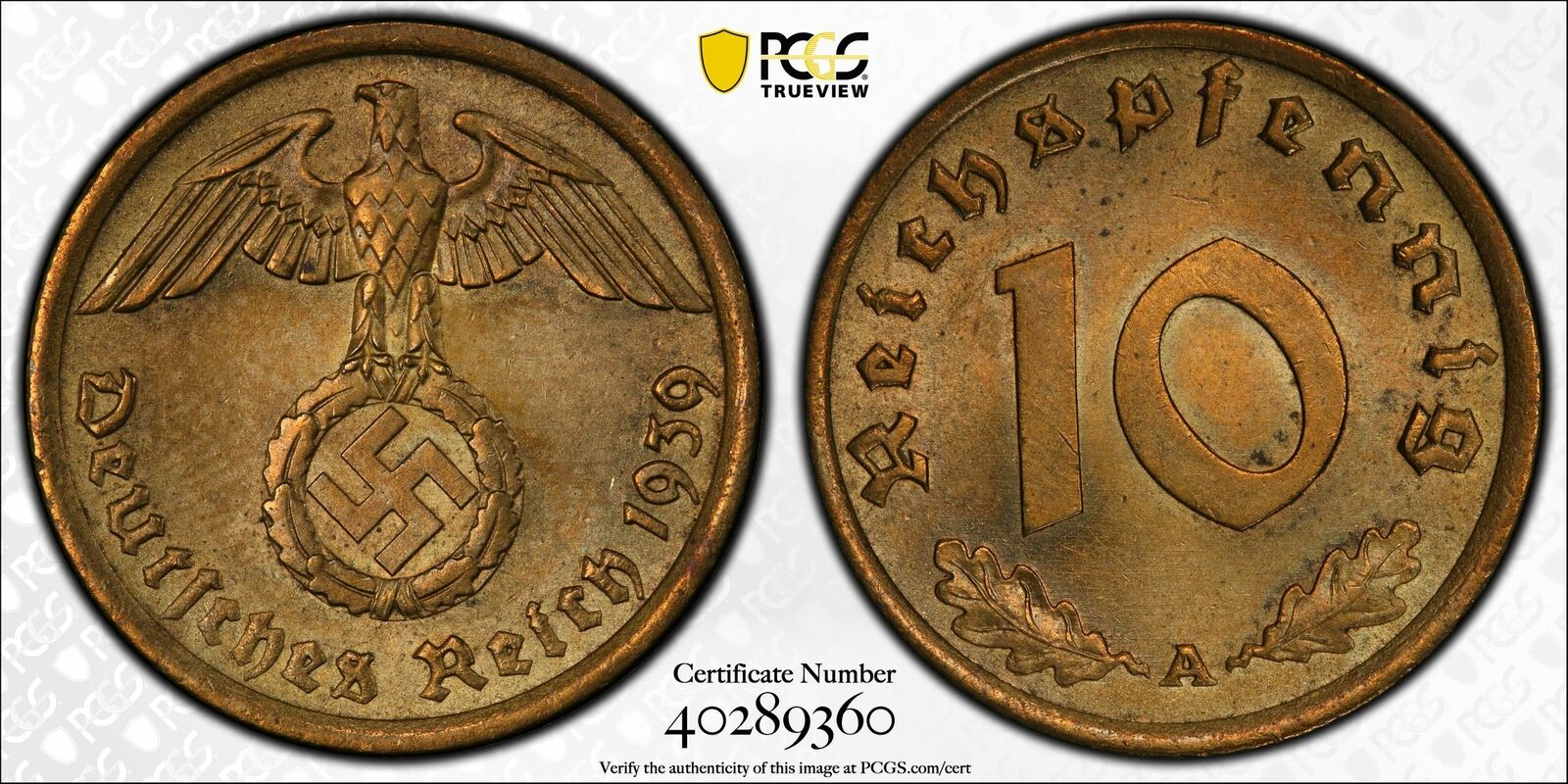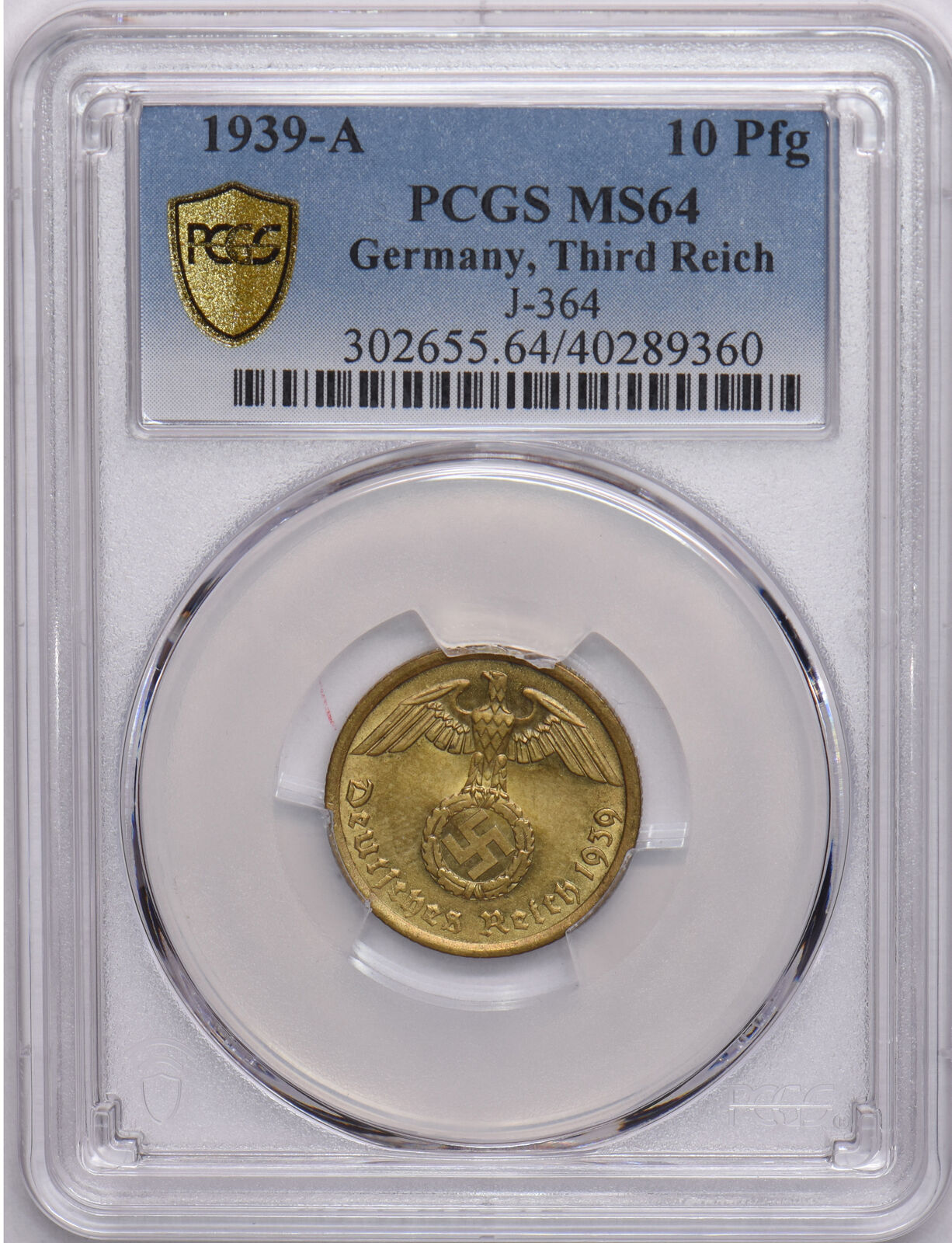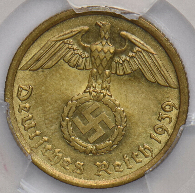 Germany 1939 A 10 Pfennig Eagle animal PCGS MS64 Third Reich. J-364 PC1086 combi