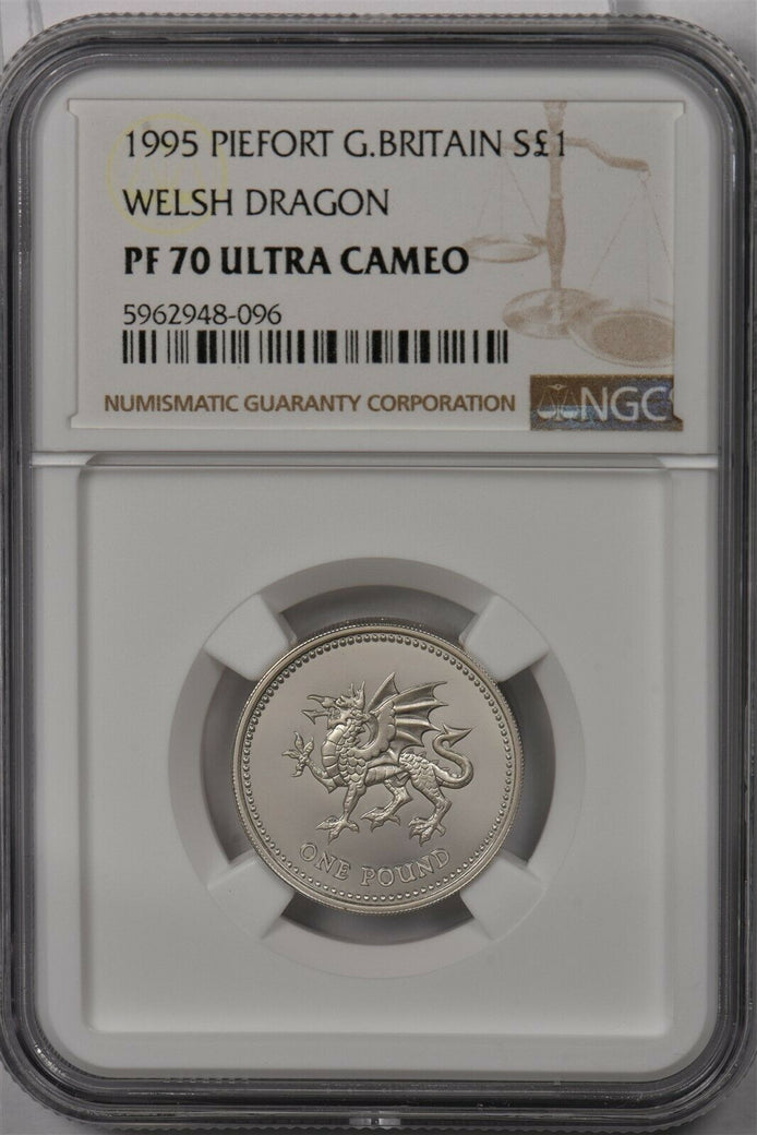 Great Britain 1995 Pound silver NGC Proof 70UC Piefort Welsh Dragon Perfect 70 N