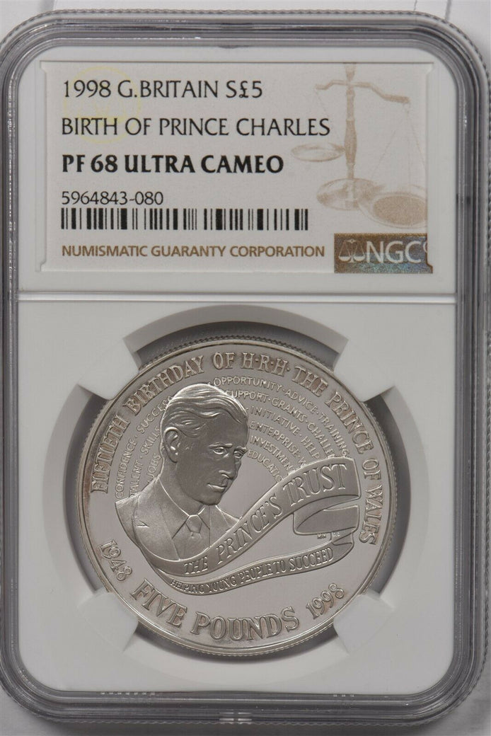 Great Britain 1998 5 Pound silver NGC PF 68UC Birth Of Prince Charles NG1367 com