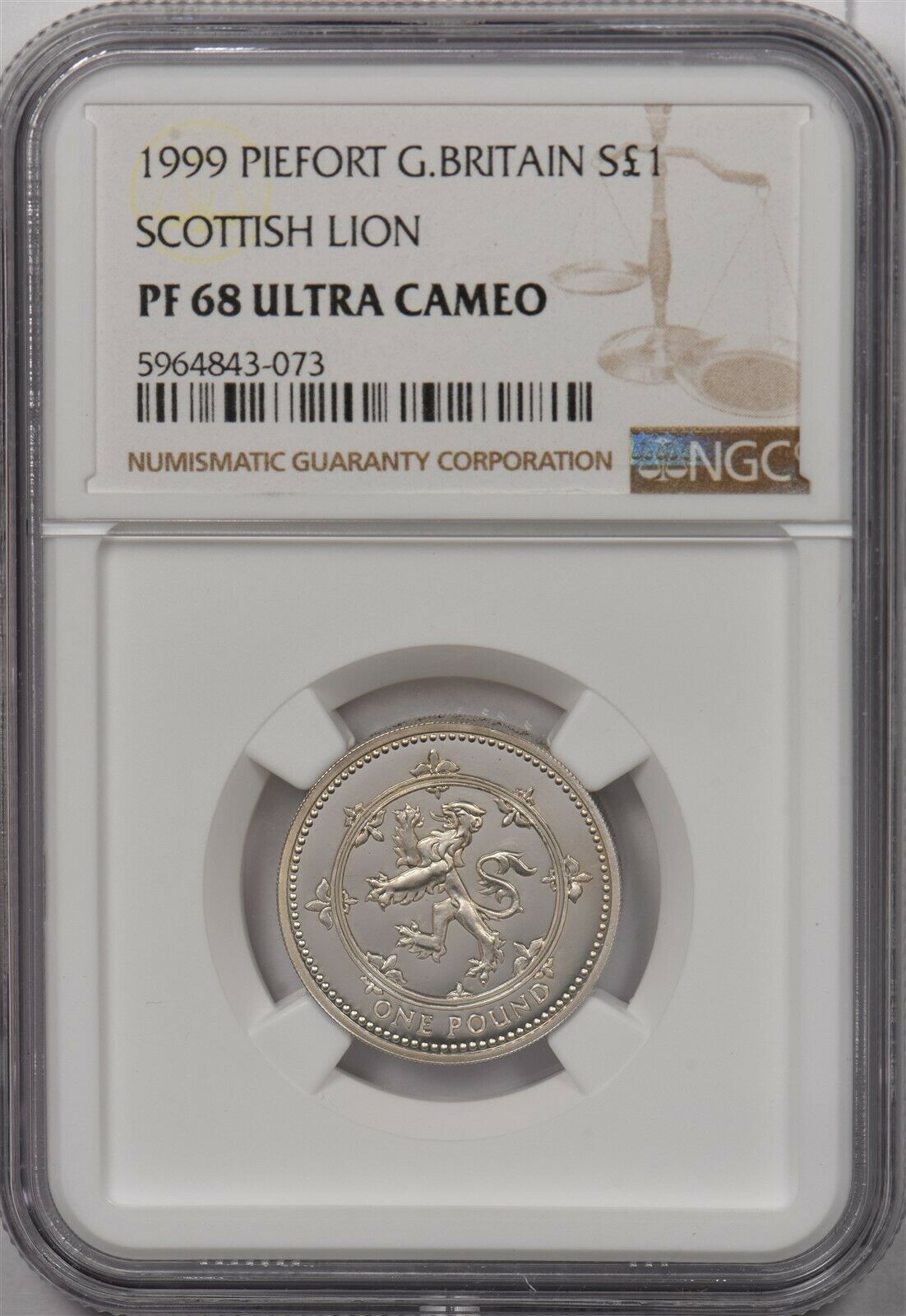 Great Britain 1999 Pound silver Scottish lion animal NGC PF68UC Piefort NG1255 c