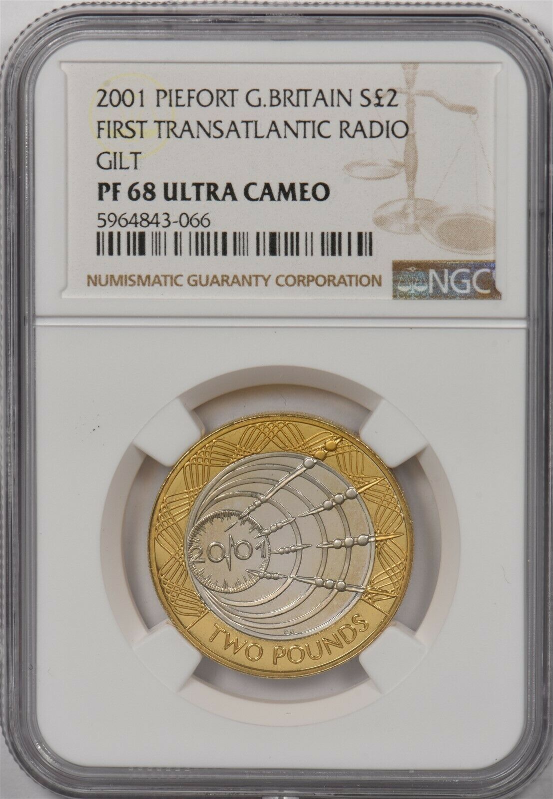 Great Britain 2001 2 Pounds silver NGC PF68UC First transatlantic radio gilt. Piefort NG1299 combine shipping