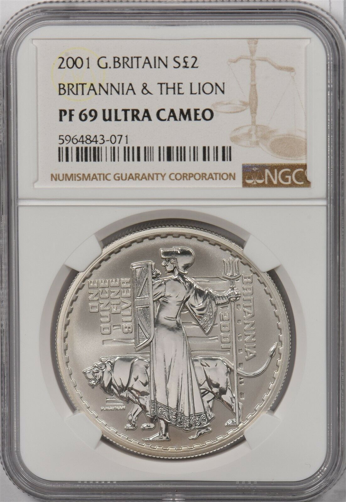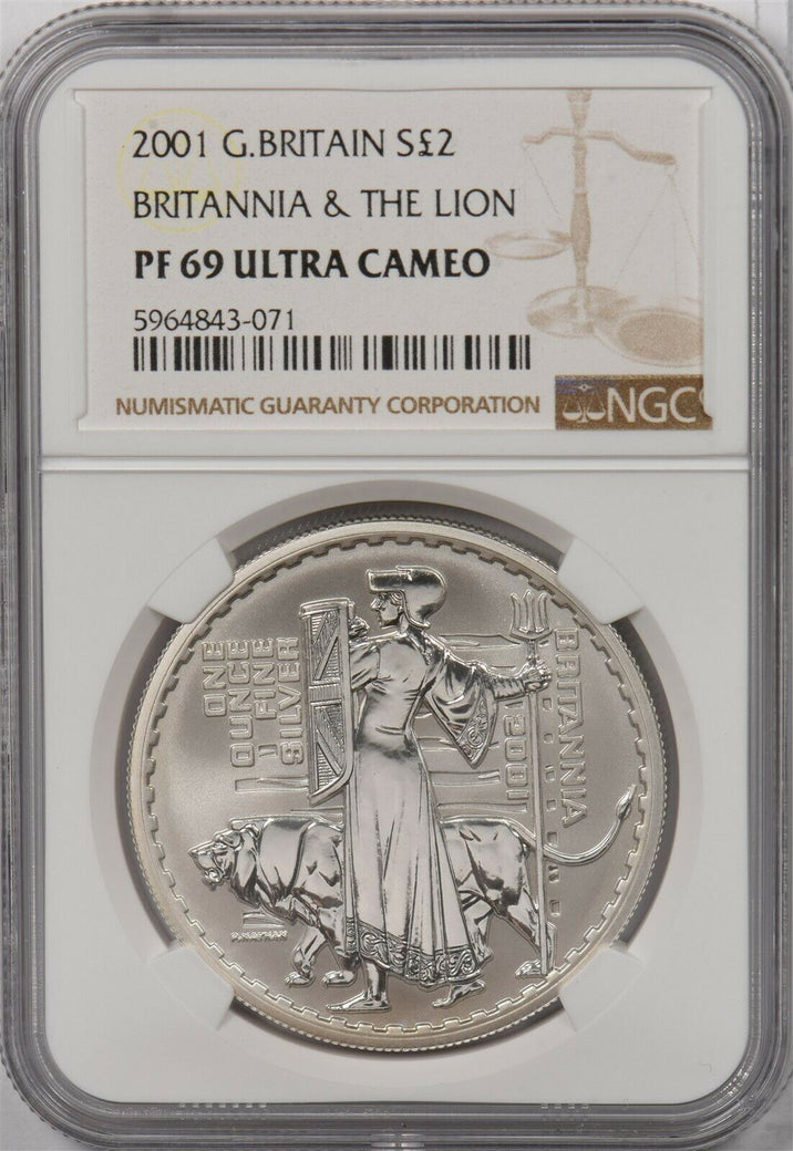 Great Britain 2001 2 Pounds silver NGC PF69UC Britannia & the lion NG1318 combin
