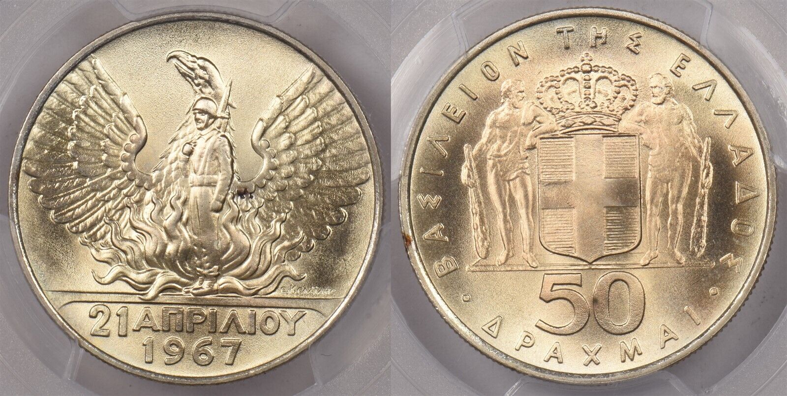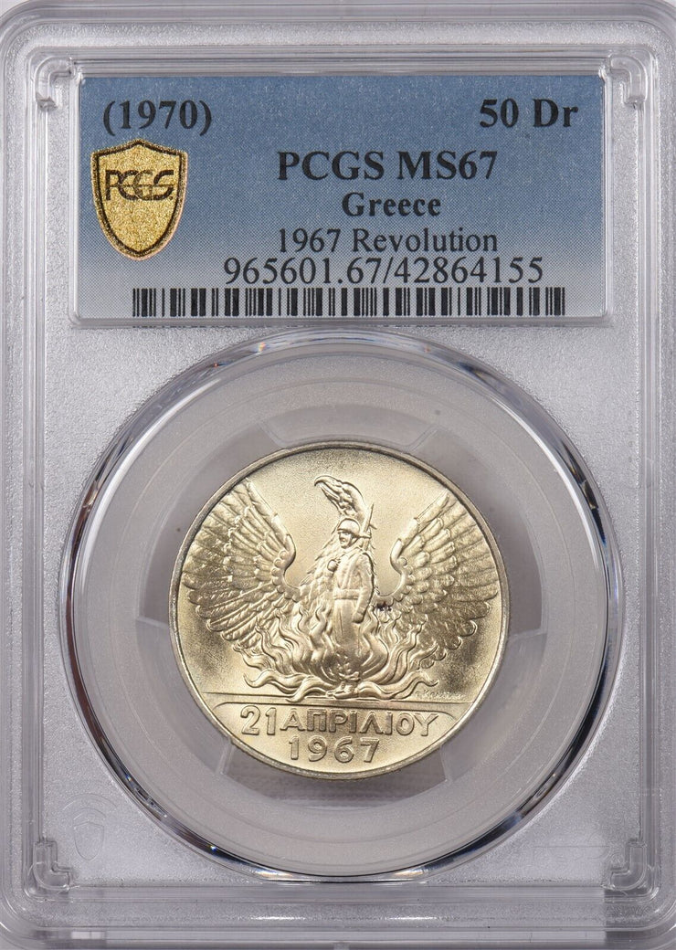 Greece 1970 50 Drachmai Eagle animal PCGS MS 67 1967 Revolution PC1360 combine s