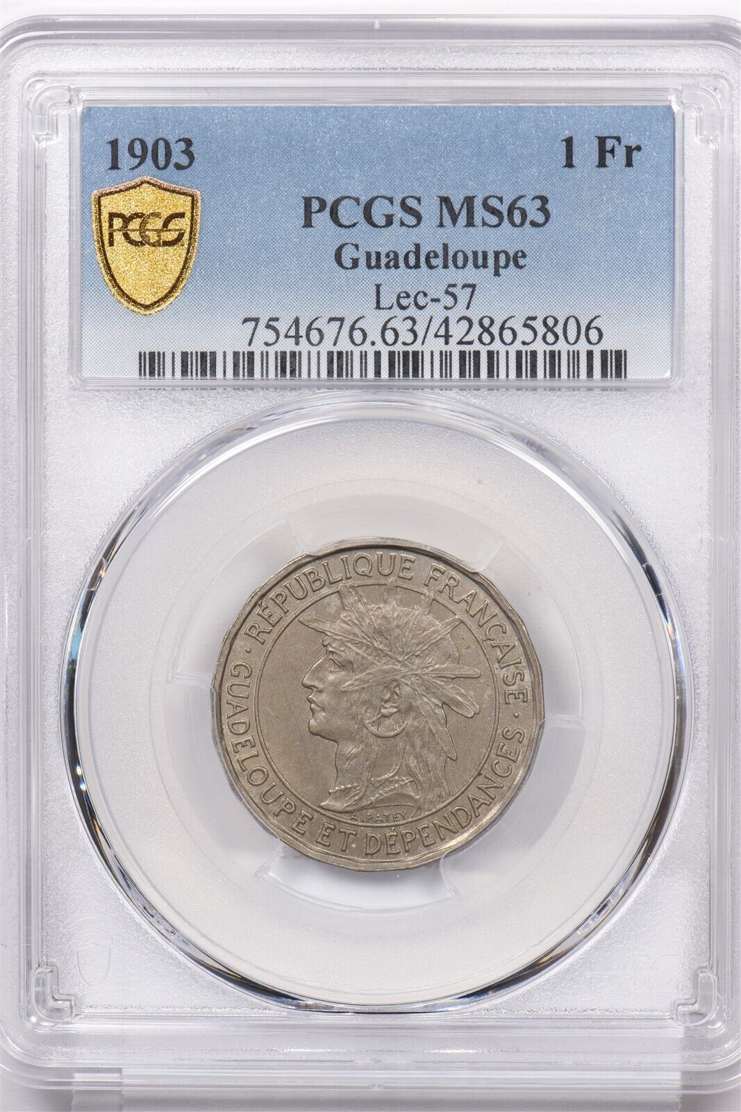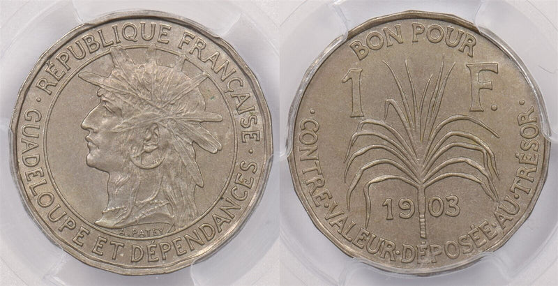 Guadeloupe 1903 franc PCGS MS 63 Lec-57 PC1302 combine shipping