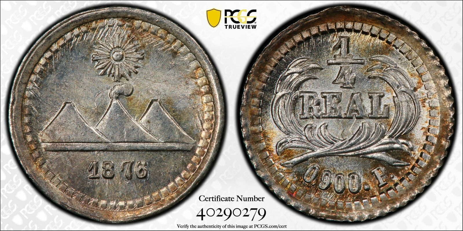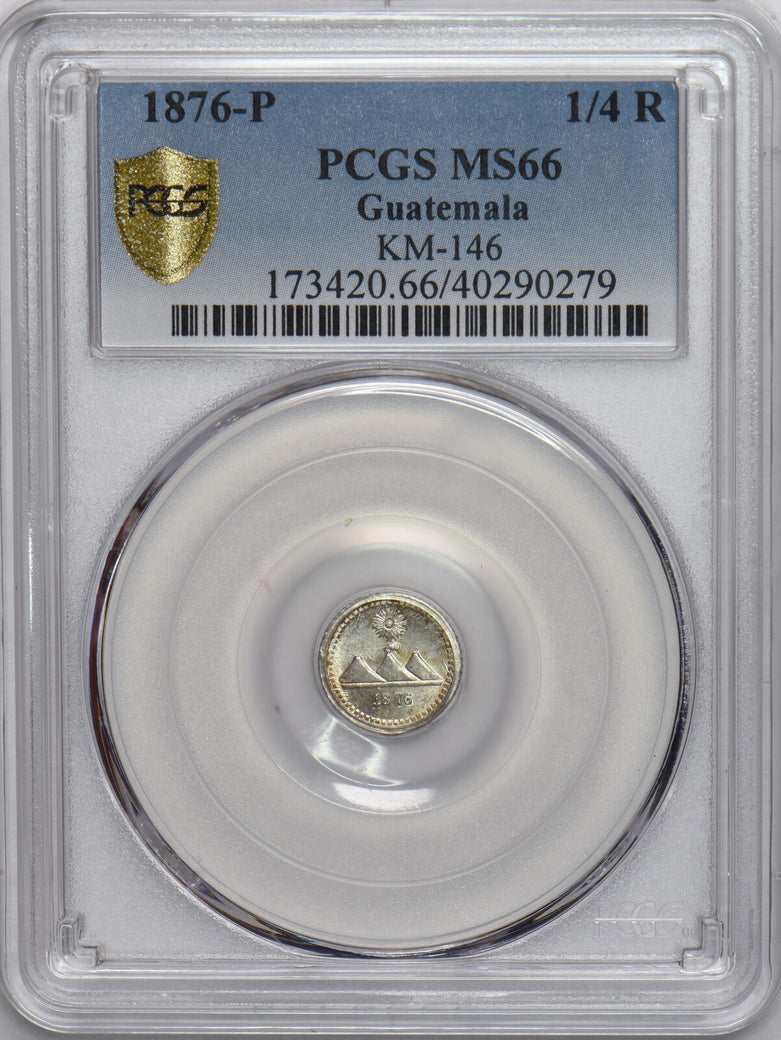 Guatemala 1876 P 1/4 Real PCGS MS66 KM-146 PC1061 combine shipping