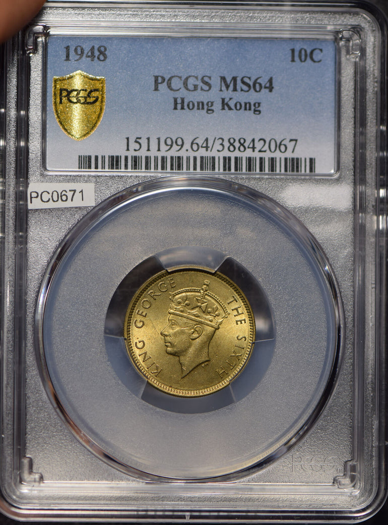 Hong Kong 1948 10 Cents PCGS MS64 PC0671 combine shipping