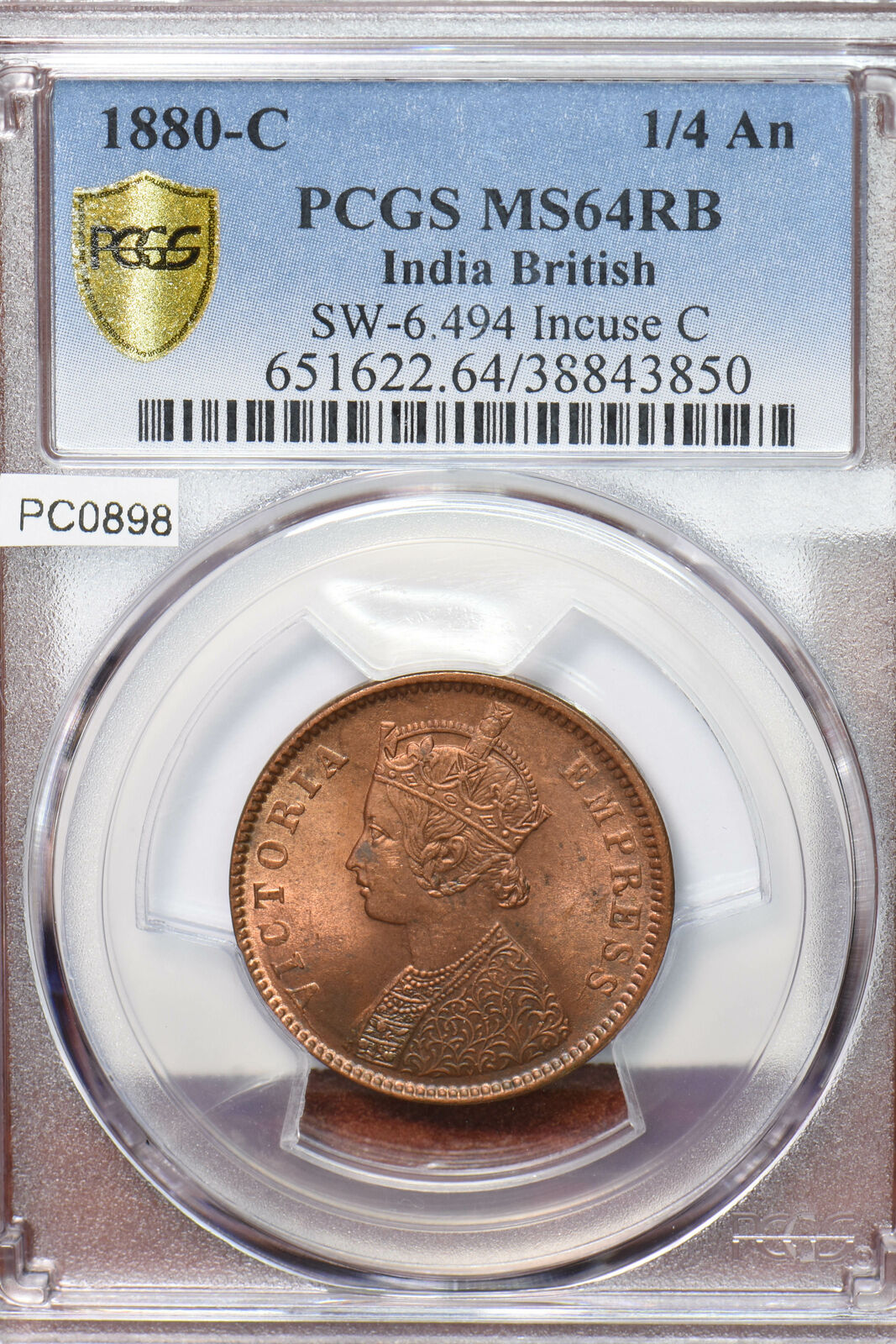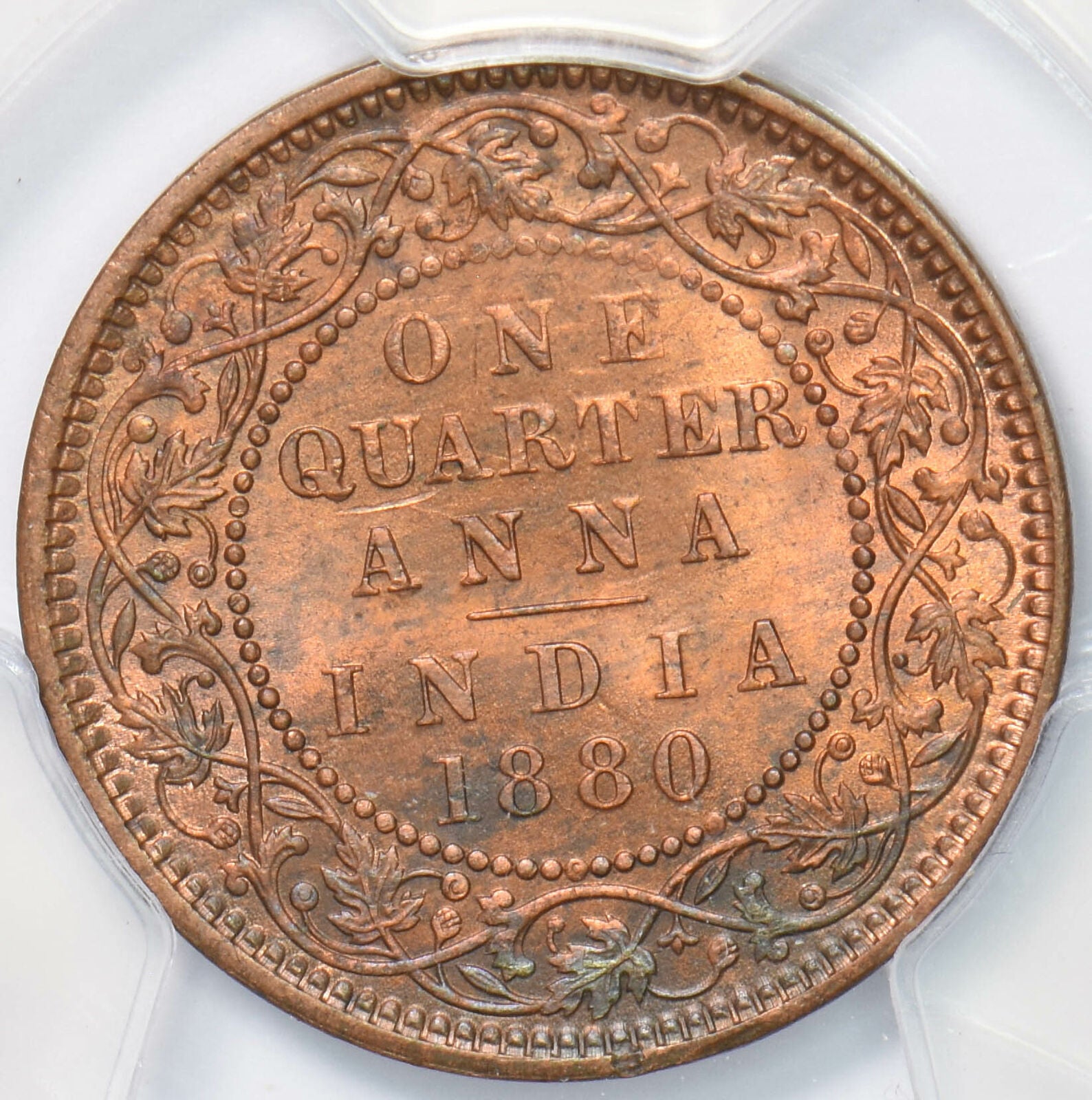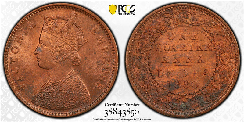 India British 1880 C 1/4 Anna PCGS MS64RB SW-6.494 Incuse C PC0898* combine shipping