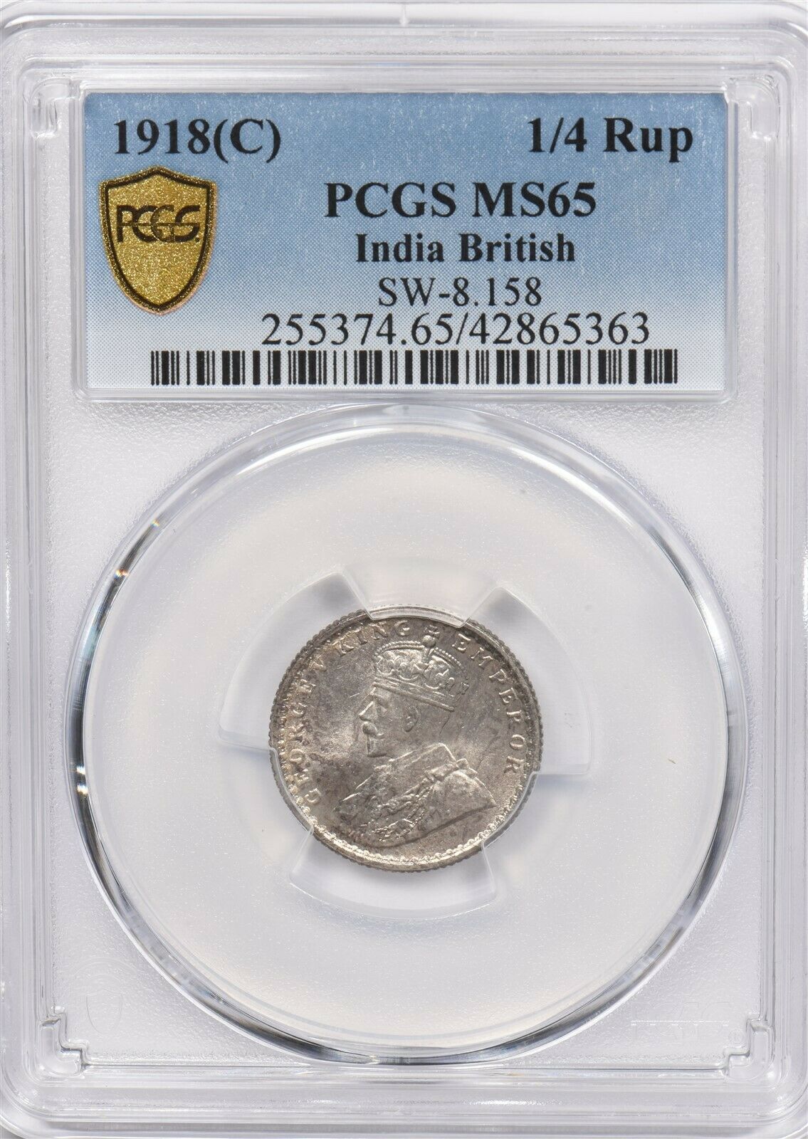 India British 1918 C 1/4 Rupee PCGS MS 65 rare condition SW-8.158 PC1239 combine