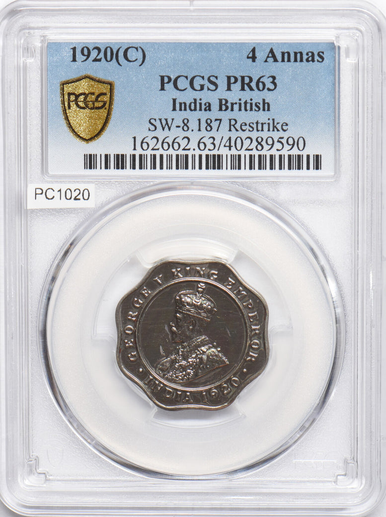 India British 1920 C 4 Annas PCGS PR63 Restrike Proof SW-8.187 PC1020 combine shipping
