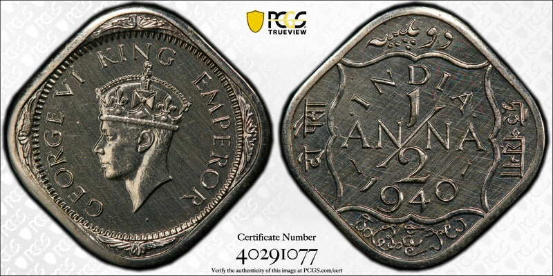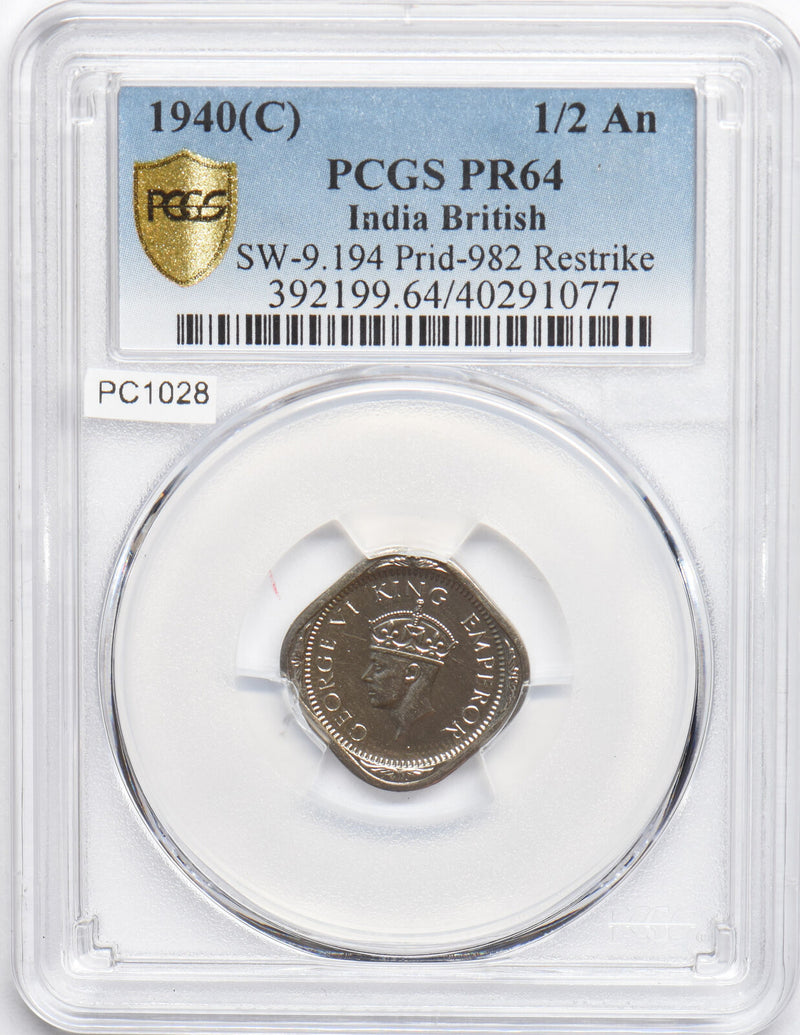 India British 1940 C 1/2 Anna PCGS PR64 Restrike Proof rare grade SW-9.194 Prid-982 PC1028 combine shipping