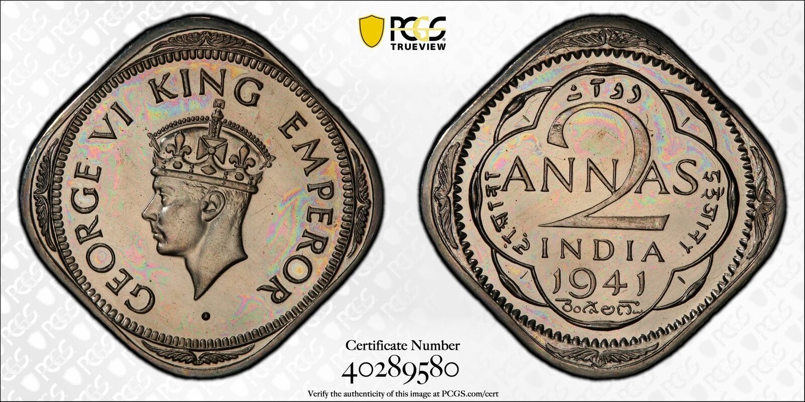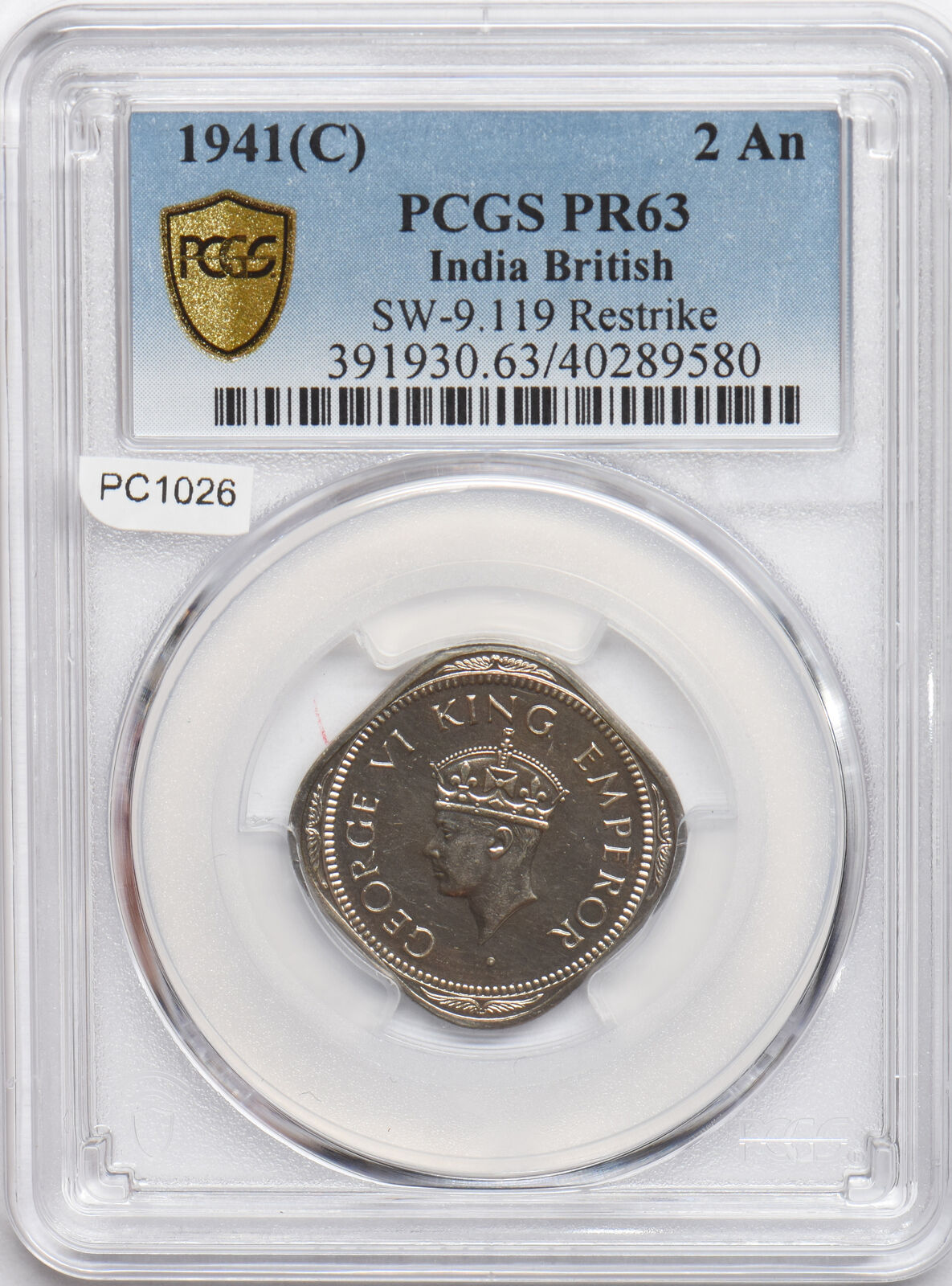 India British 1941 C 2 Annas PCGS PR63 Restrike Proof SW-9.119 PC1026 combine sh