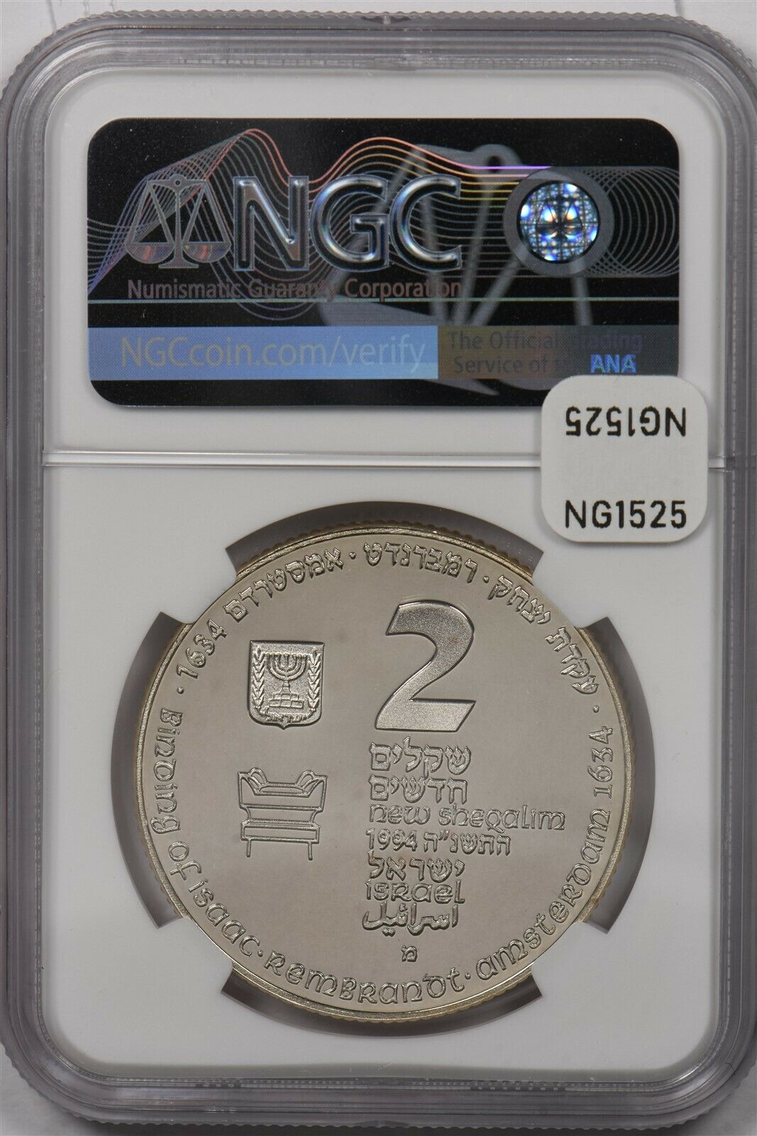 Israel 1994 2 New Sheqalim silver NGC Proof 68UC Binding of Isaac NG1525 combine shipping
